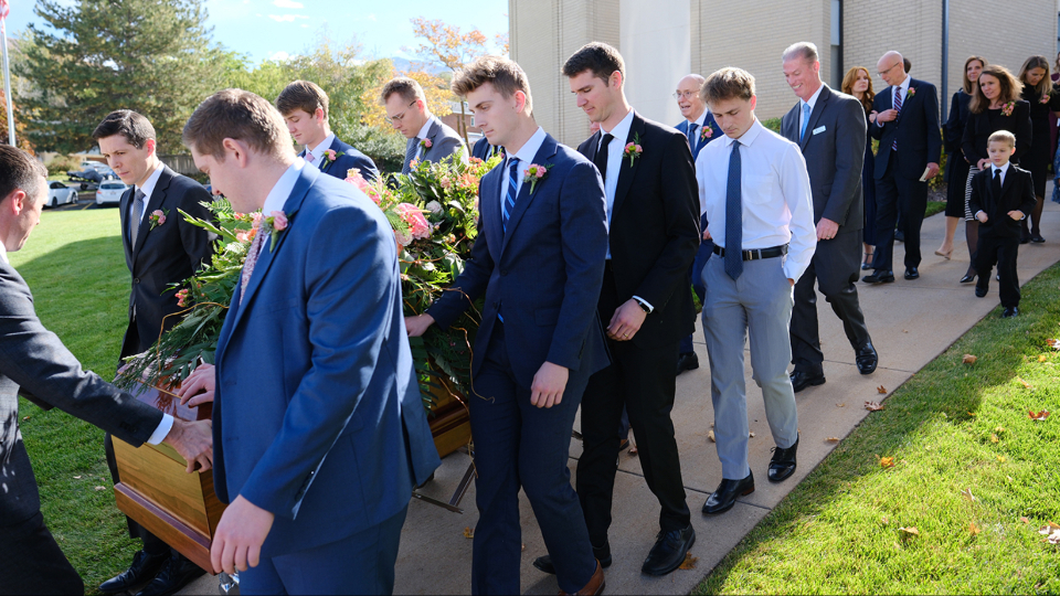 President Christopher G. Jackson of the Bountiful Utah Mueller Park Stake conducted the service, which was broadcast to friends and admirers around the world. Elder Jeffrey R. Holland, Elder Dieter F. Uchtdorf and Elder Dale G. Renlund of the Quorum of the Twelve Apostles, and numerous friends, neighbors and ward members also attended.
