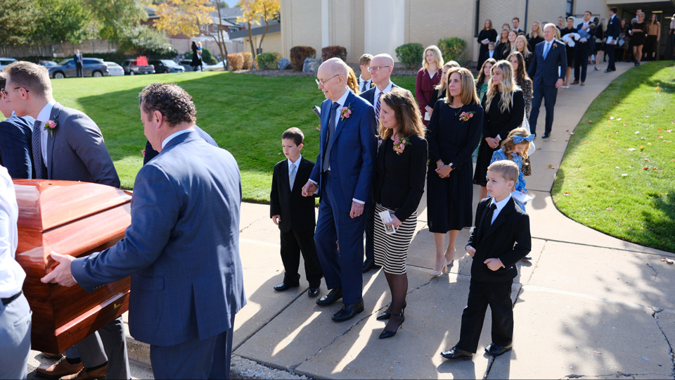 Friends, family and other loved ones gathered in Bountiful, Utah, on October 21 for the funeral services of Sister Kathleen Johnson Eyring, celebrating her love of and commitment to her family and her quiet ministering, consecrated discipleship, and enduring and powerful dedication to the Savior Jesus Christ.