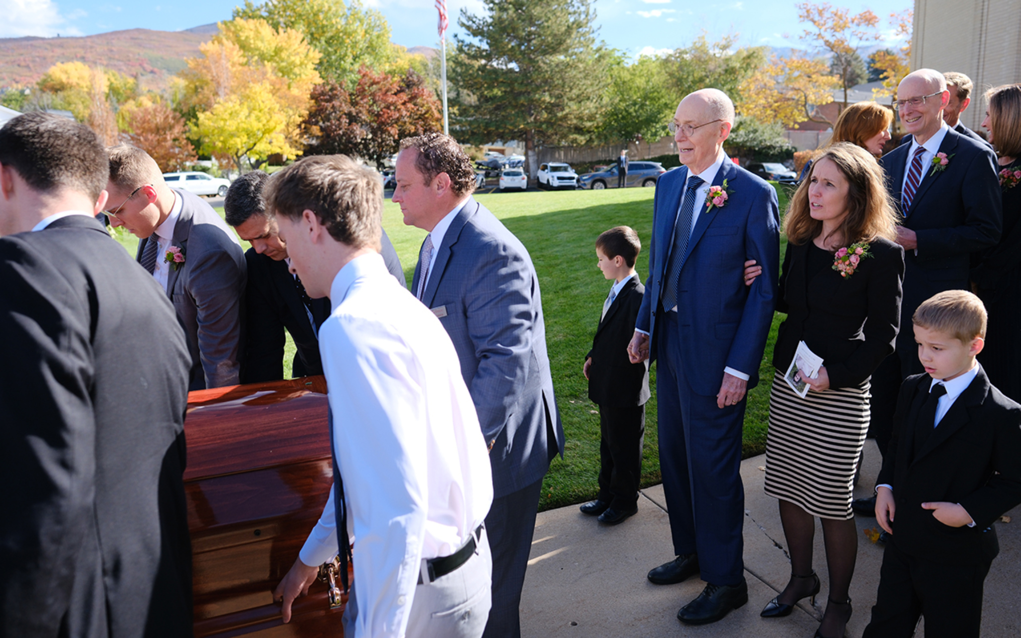 Presidency Henry B. Eyring, Second Counselor in the First Presidency of The Church of Jesus Christ of Latter-day Saints, and family members watch the loading of the casket following the funeral for his wife, Sister Kathleen Eyring, on Saturday, October 21, 2023.2023 by Intellectual Reserve, Inc. All rights reserved.Millions have prayed for Sister Eyring, President Eyring and their family — that the will of Heavenly Father would be realized, President Oaks said. “Now we continue our prayers that each of you will have the strength to adjust to the new condition you have with a beloved wife, mother and grandmother on the other side of the veil of death.”