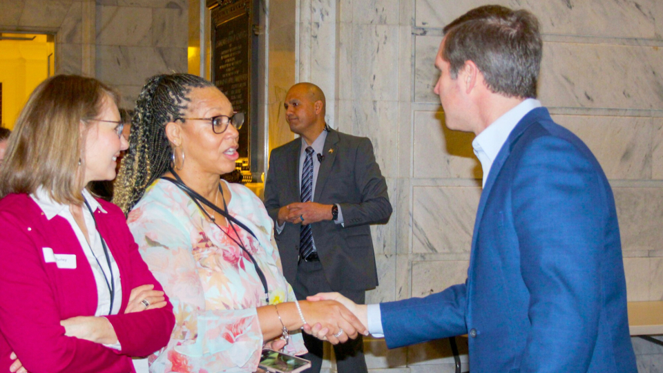 The stake delegations met with the governor and then had meetings with their local representatives, speaking with 48 legislators — about one-third of the Kentucky General Assembly. Church members shared information about the humanitarian aid and service that the Church provides throughout the state.