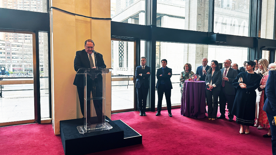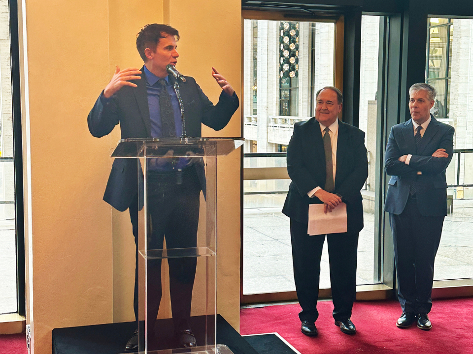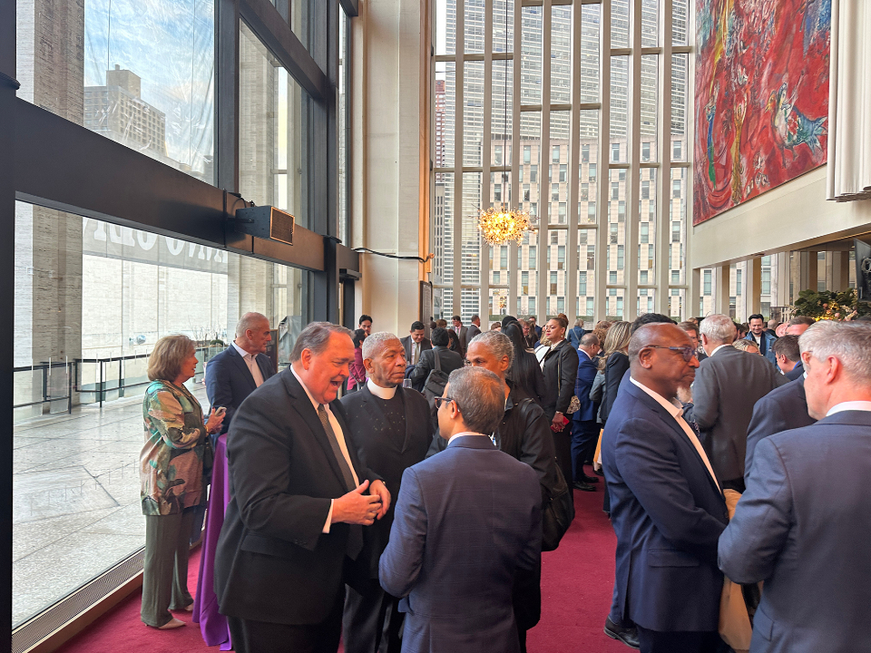 Composer and conductor Rob Gardner speaks at a reception before the “Lamb of God” concert at The Metropolitan Opera House at Lincoln Center in New York City on Monday, March 30, 2026. Also pictured are Elder Allen D. Hanie, General Authority Seventy and President of the United States Northeast Area, and Elder David Marriott, an Area Seventy, both of The Church of Jesus Christ of Latter-day Saints.2026 by Intellectual Reserve, Inc. All rights reserved.Eugene F. Rivers, founder of the Seymour Institute for Black Church and Policy Studies in Boston, said at the reception, “One of the most powerful statements of hope is the resurrection itself. … Jesus gives hope to the world.”