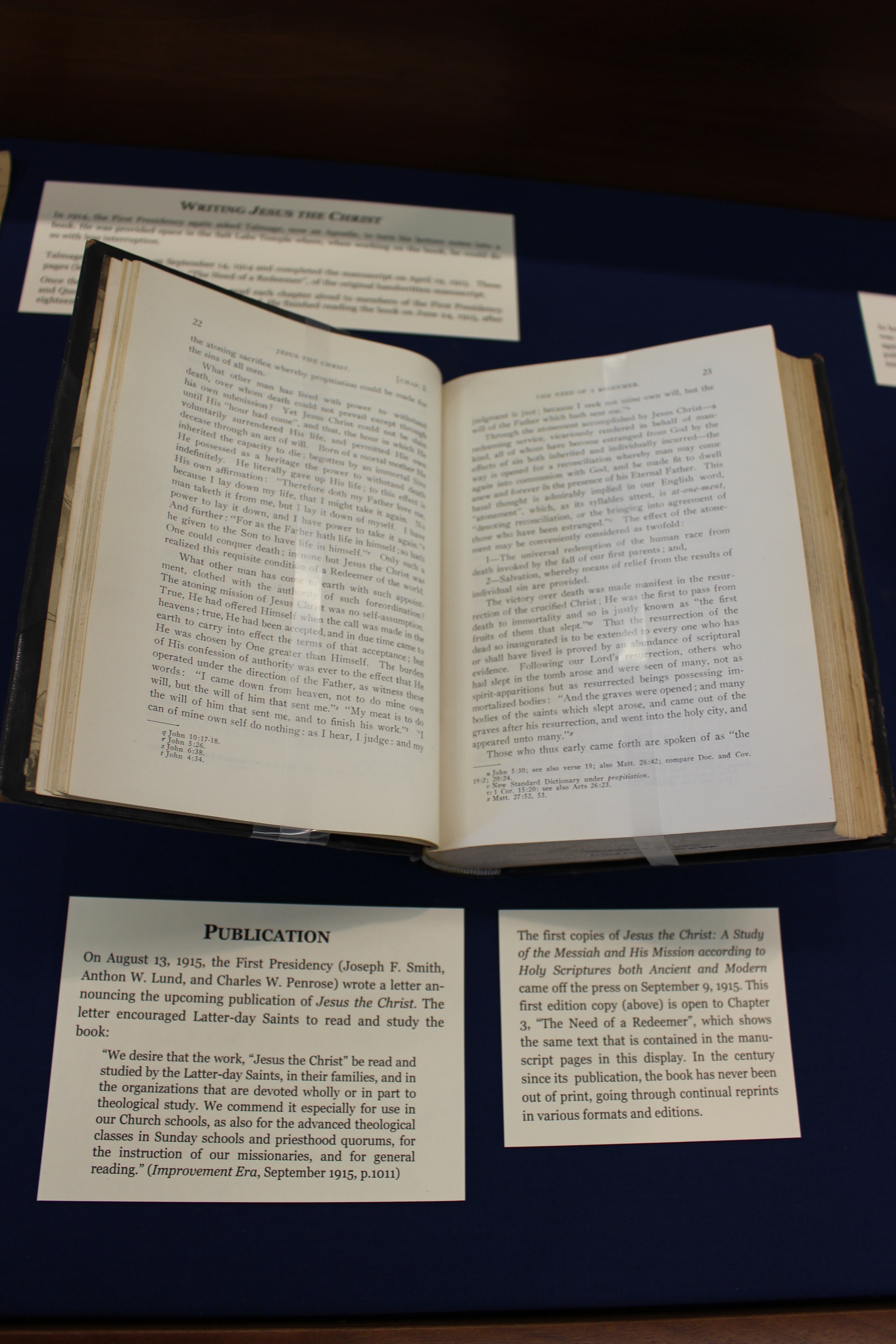The Church History Library of The Church of Jesus Christ of Latter-day Saints is marking the 100th anniversary of the first publication of the book Jesus the Christ with an exhibit beginning September 8, 2015.