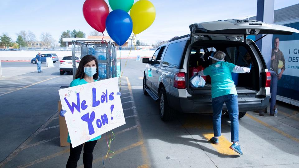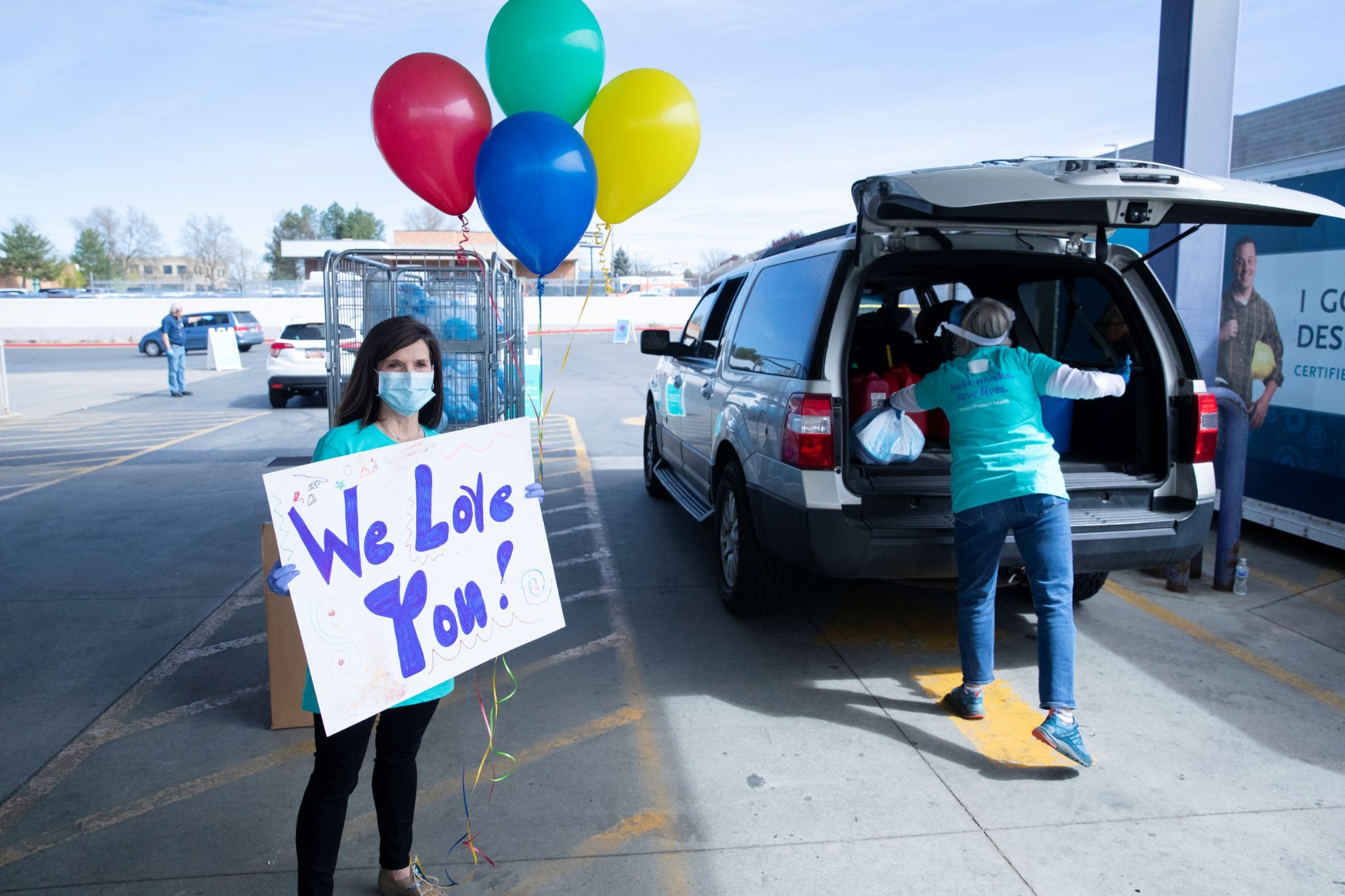 Members of the Church’s Young Women General Presidency help Project Protect volunteers drop off completed clinical face masks in a Deseret Industries drive-through in Layton, Utah, on Saturday, April 25, 2020. Sister Becky Craven (left) held a decorated sign that service participants read as they pulled up in their vehicles.© 2020 by Intellectual Reserve, Inc. All rights reserved.- Latter-day Saint Charities, along with partners at Intermountain Healthcare and University of Utah Health, embarked on ProjectProtect, one of the largest volunteerism efforts in Utah since the 2002 Olympic Winter Games. More than 57,000 volunteers were mobilized to sew over 6 million medical-grade face masks by the end of the initiative. It became a template for other successful personal protective equipment efforts around the globe.