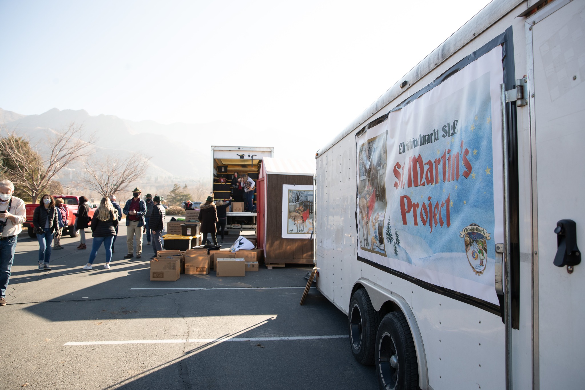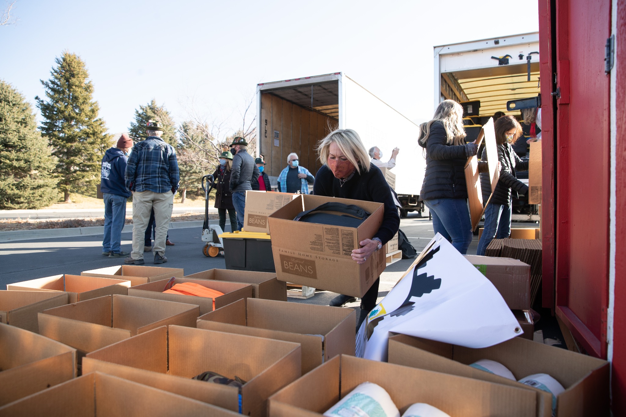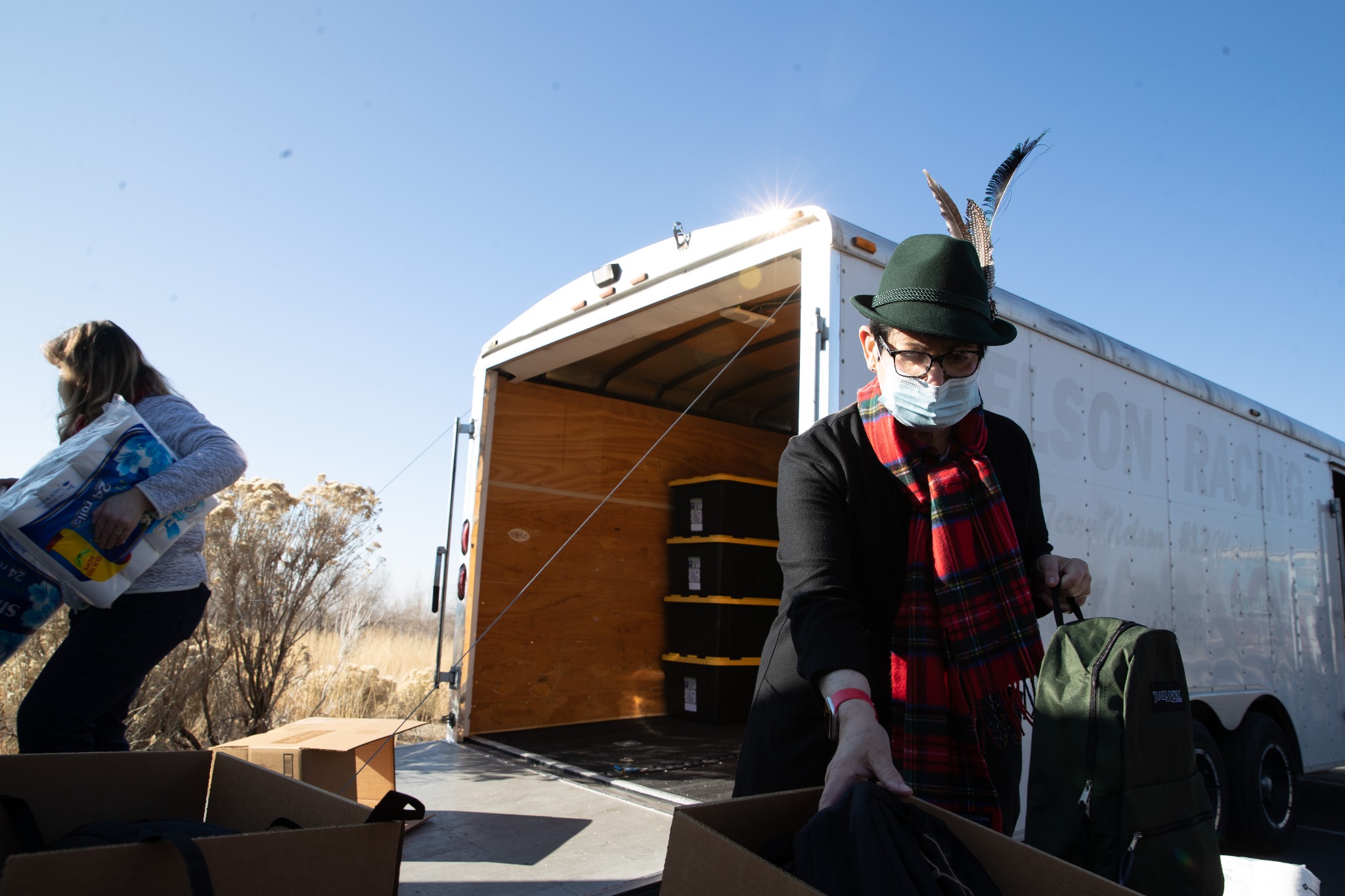 Dozens of volunteers gathered to help pack and load the donated items at This Is The Place Heritage Park in Salt Lake City, Utah, on Tuesday, December 8, 2020.