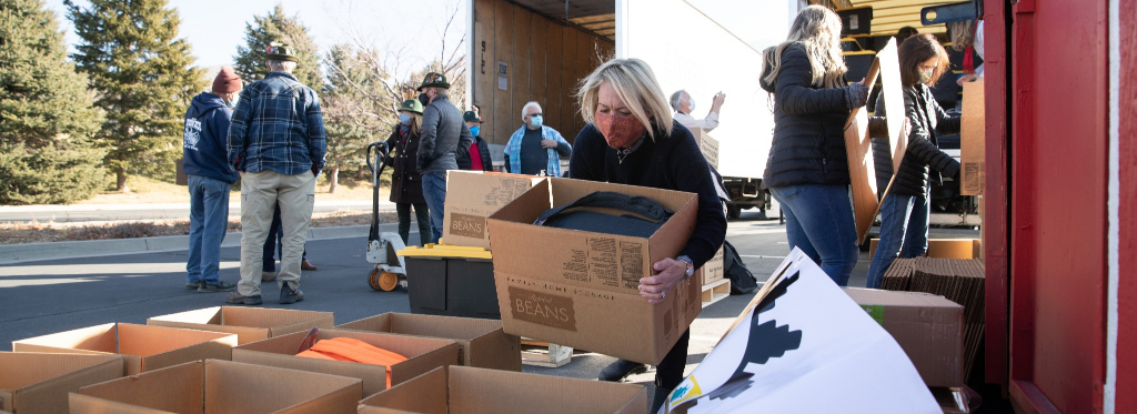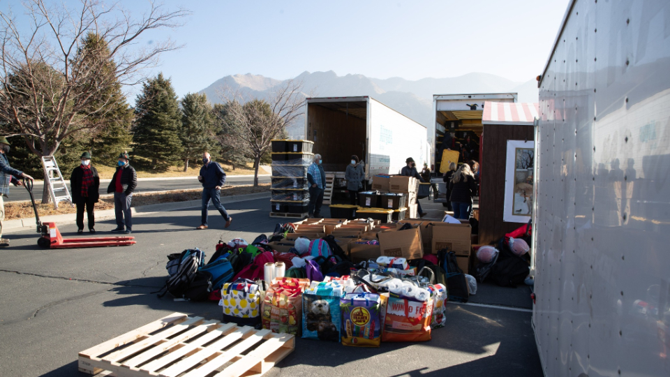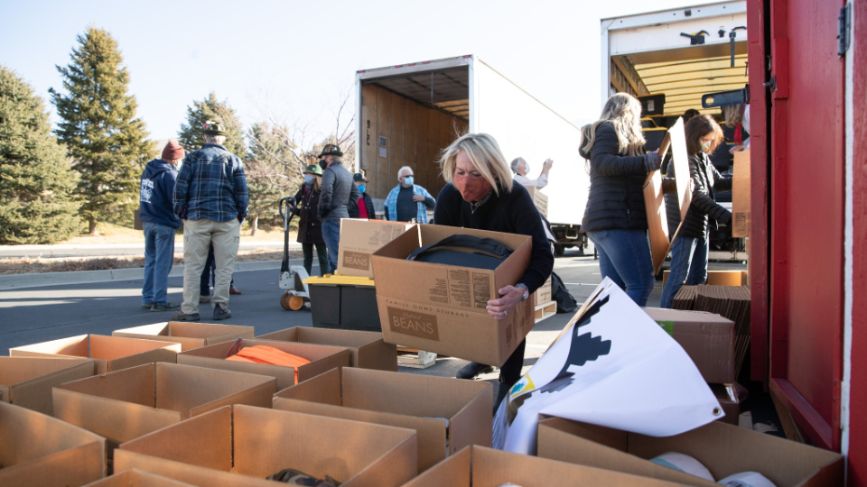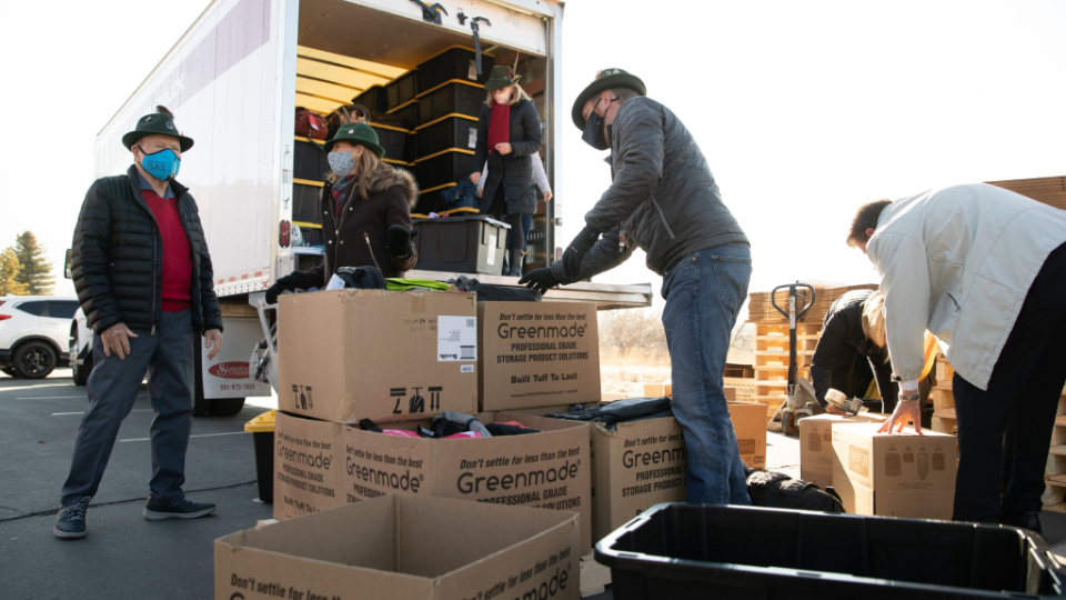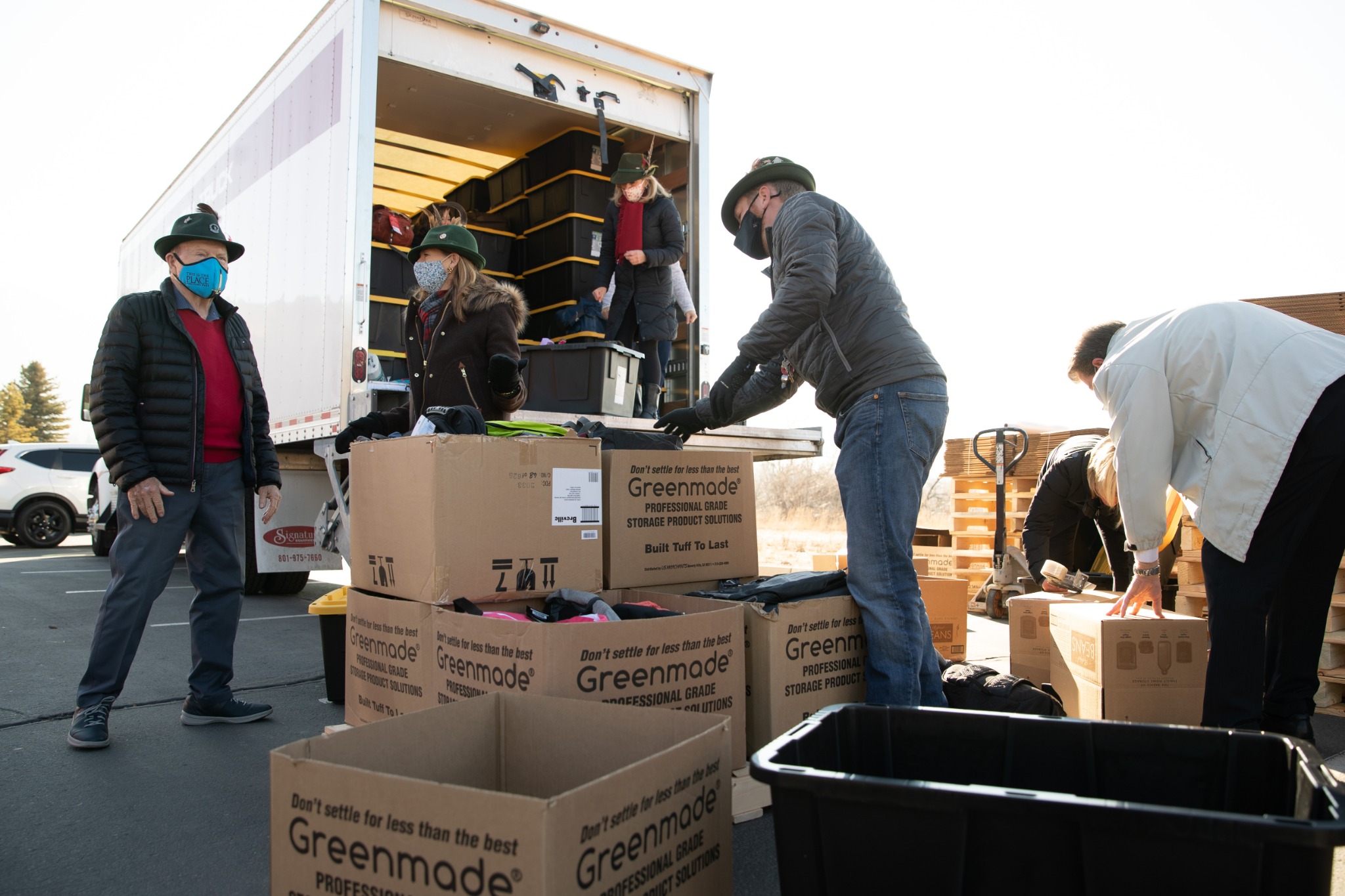 Dozens of volunteers gathered to help pack and load the donated items at This Is The Place Heritage Park in Salt Lake City, Utah, on Tuesday, December 8, 2020.