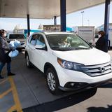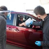 To abide by COVID-19 social distancing guidelines, the distribution center’s donation drive-through area will be temporarily converted into a drive-up location for volunteers to pull up in their vehicles and receive printed sewing instructions and a pattern to help them understand how to assemble the clinical face masks.