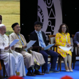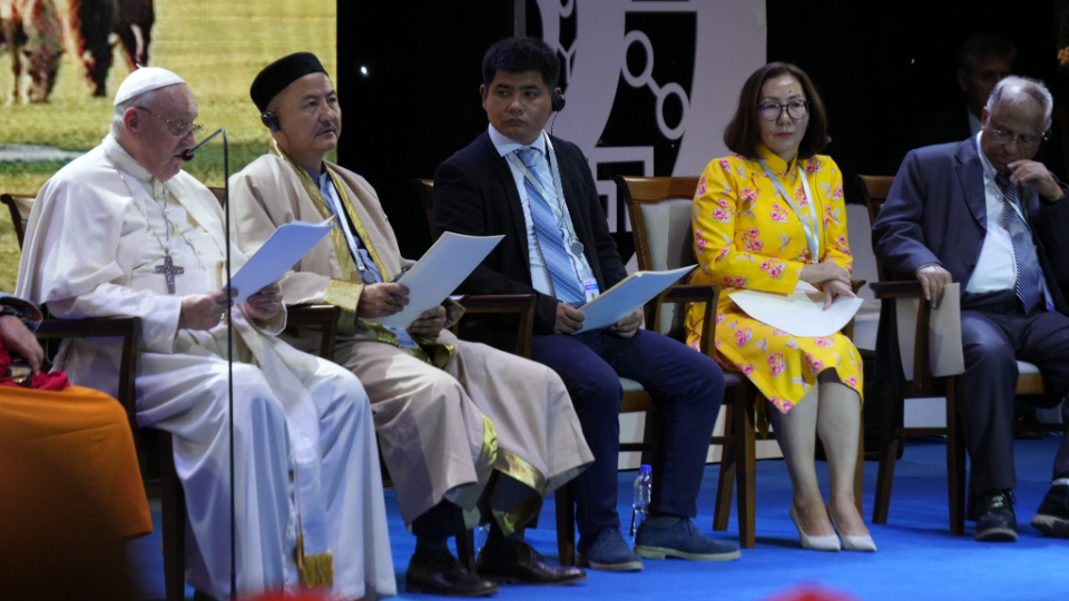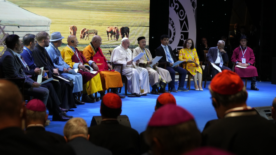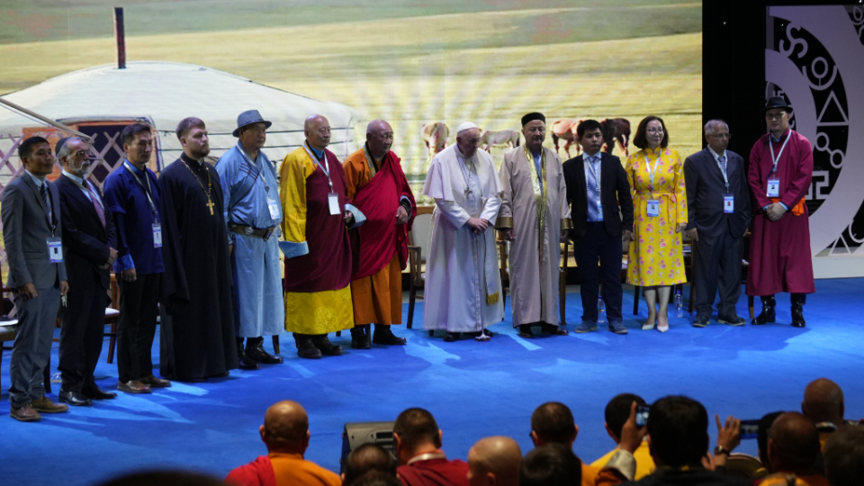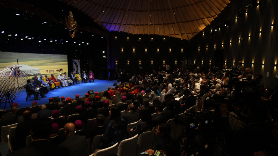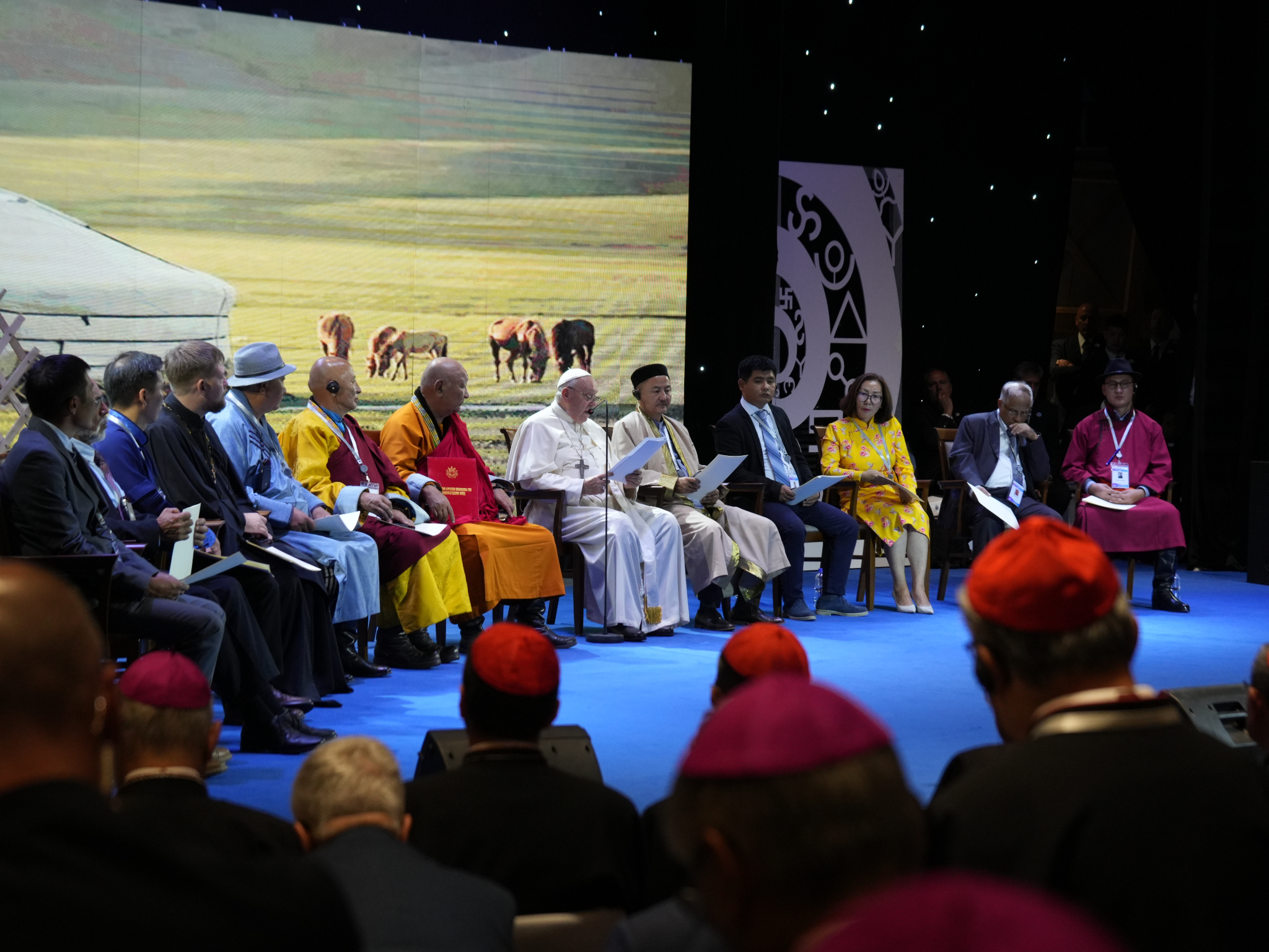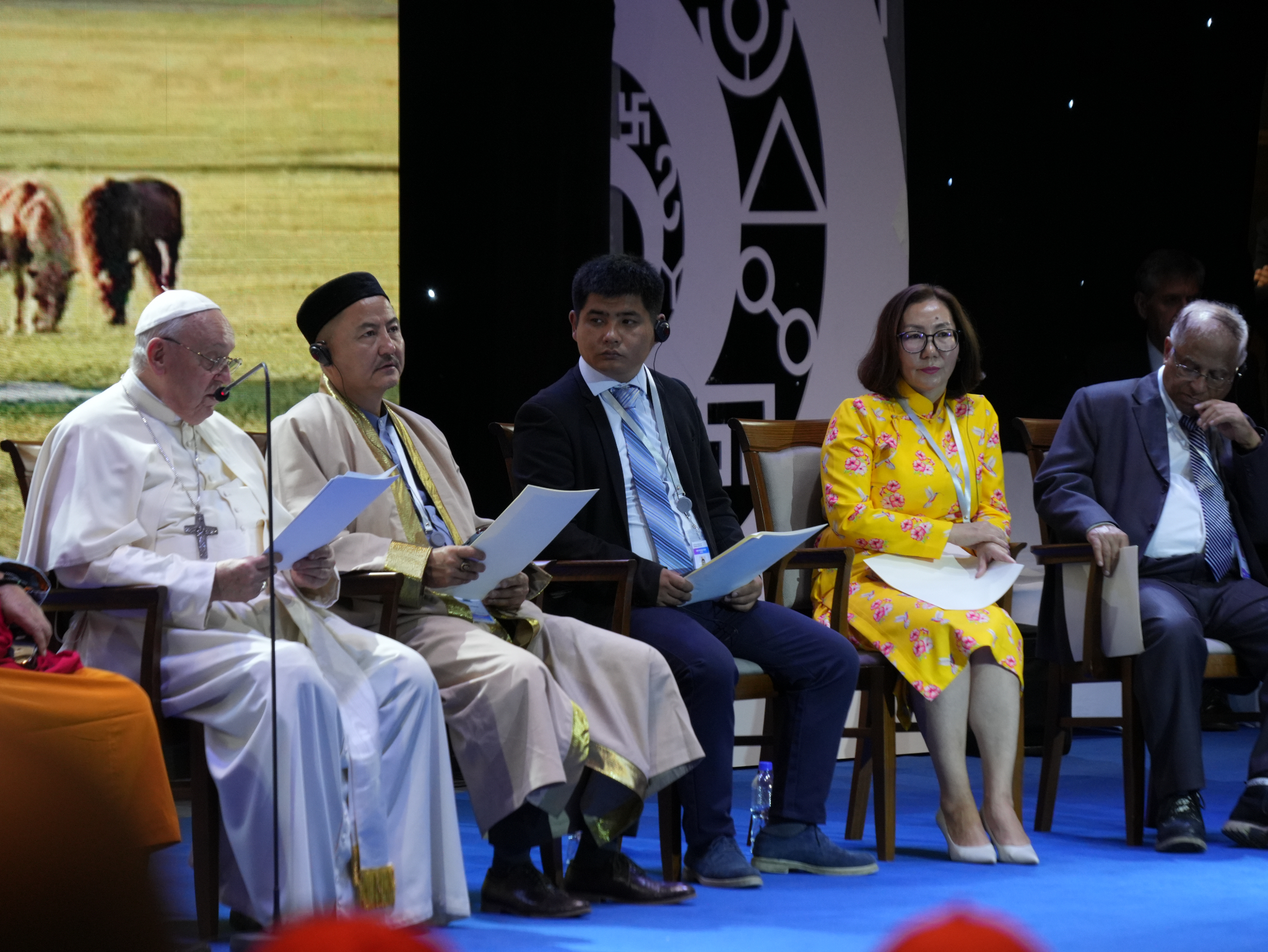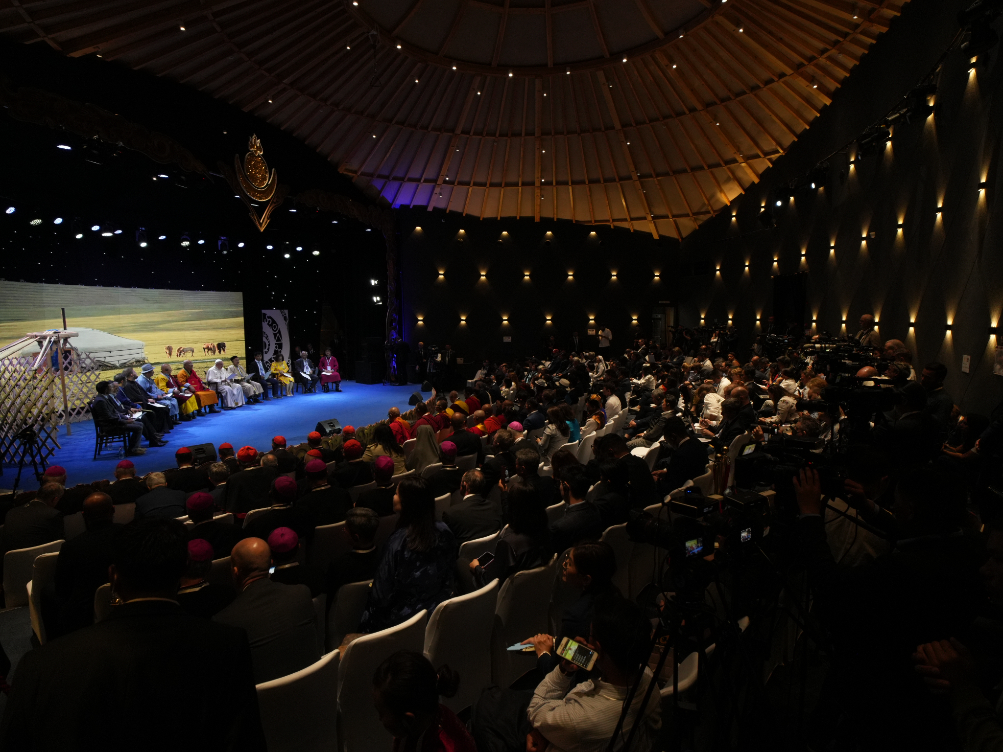 Pope Francis invited representatives of other faiths to an ecumenical gathering in the Hun Theater in Ulaanbaatar, Mongolia, on the morning of Sunday, September 3, 2023.