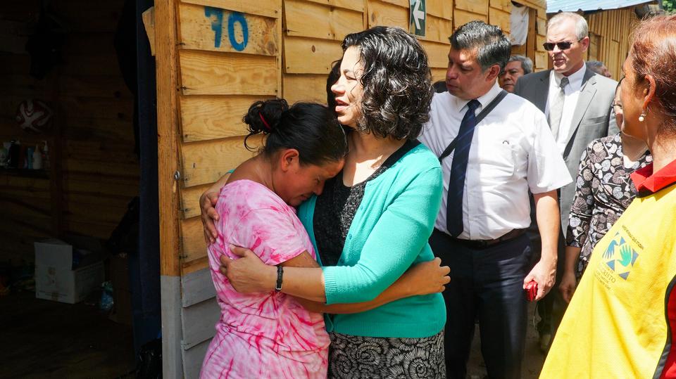 Sisters Aburto and Harkness greeted the volcano survivors, giving them words of strength and love. The families expressed their gratitude for the support and service they have received from the Church.