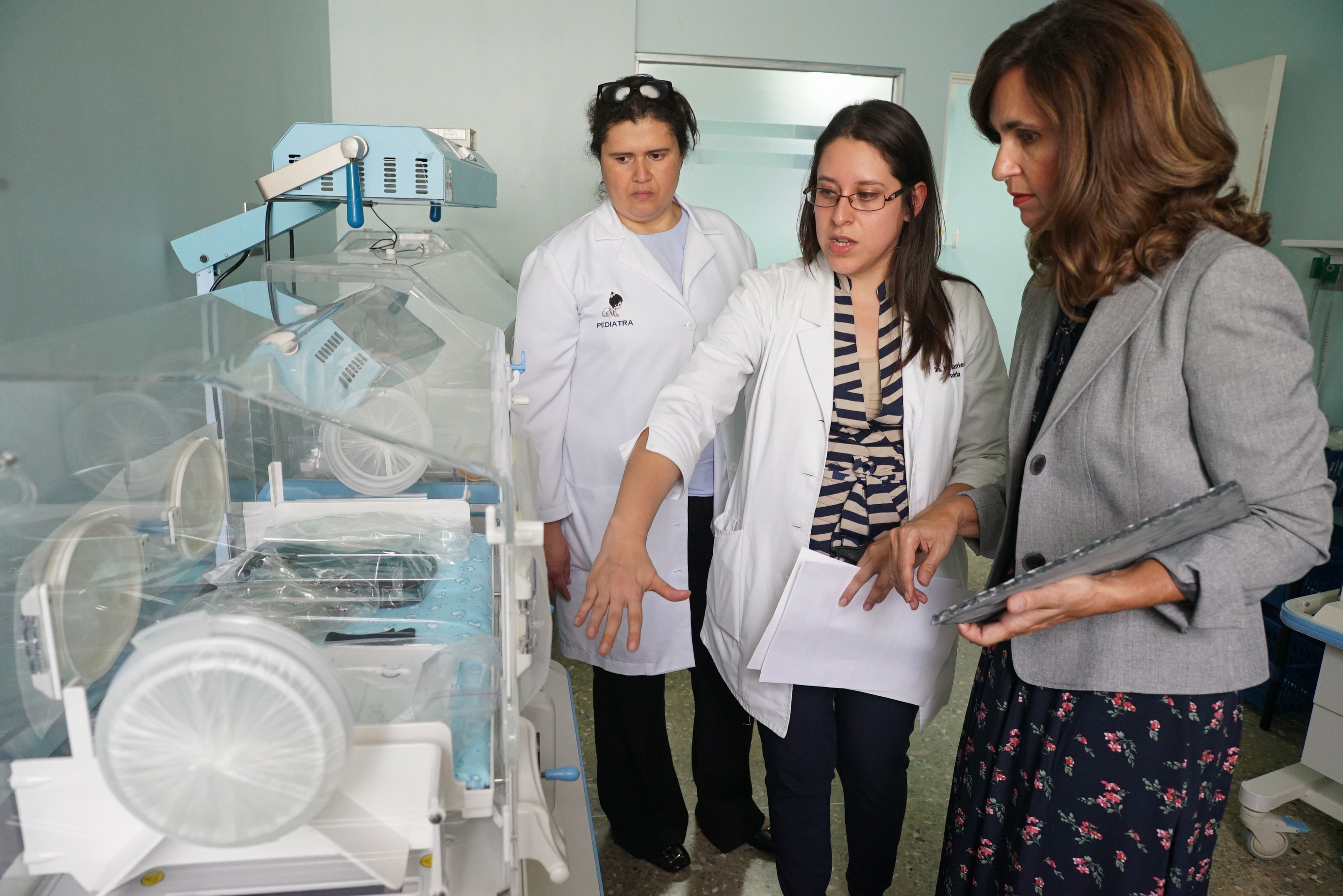 Dr. Ana Karin Quinteros, director of the hospital, thanked the Church for its support, commenting that the equipment will help newborns with medical difficulties. Dr. Natalia Barrientos, chief of pediatrics and neonatology, said the equipment is important and necessary for the hospital. The donation includes phototherapy equipment, a stationary incubator and pulse oximeter devices to monitor oxygen levels.