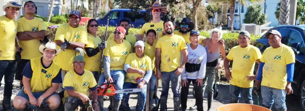 Members of the Naples Florida Stake remove fallen trees in Fort Meyers, Florida, after Hurricane Ian on October 1, 2022. Photo by Frank Fernandez, courtesy of Church News. All rights reserved.