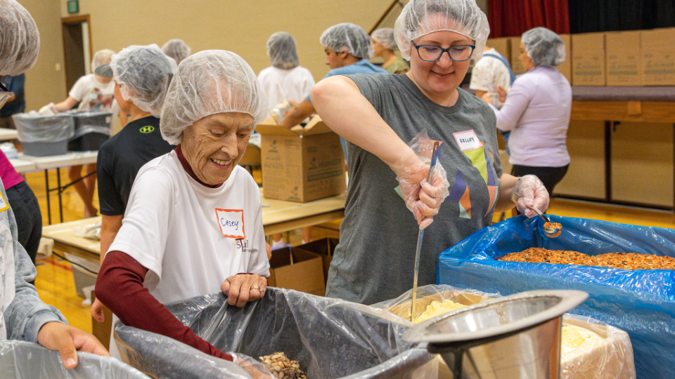 Volunteers assembled nutritious meals to help fill the pantry of St. Vincent de Paul and other community pantries and food banks.