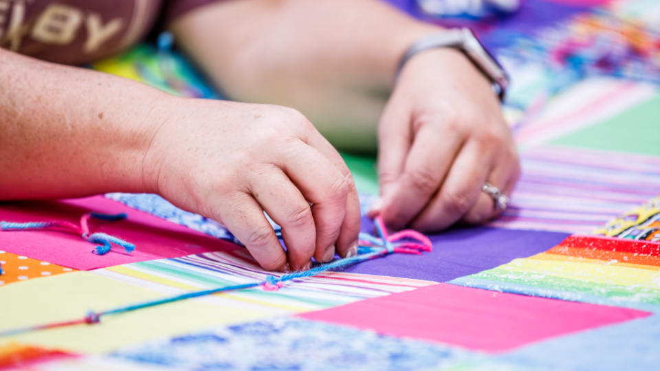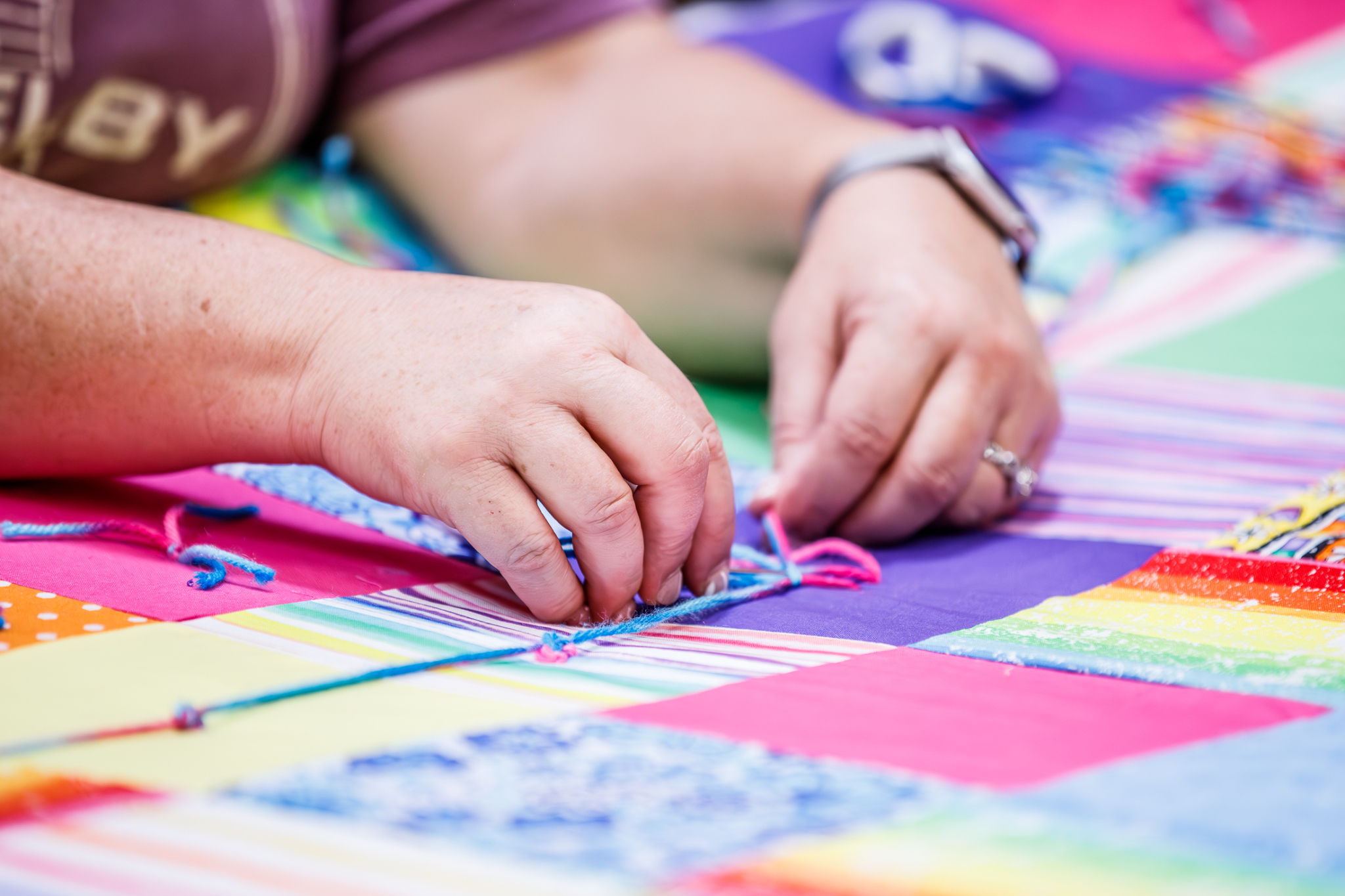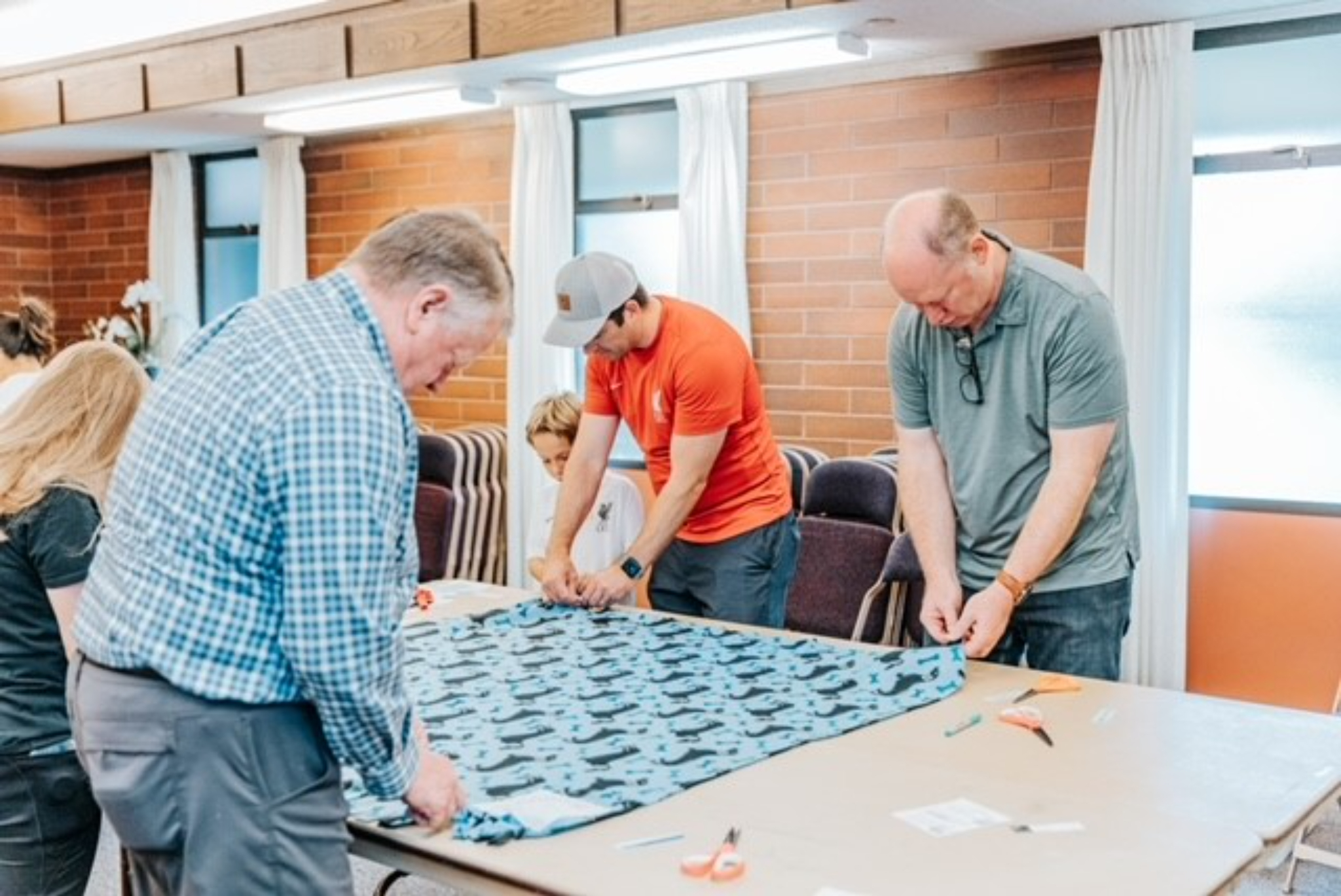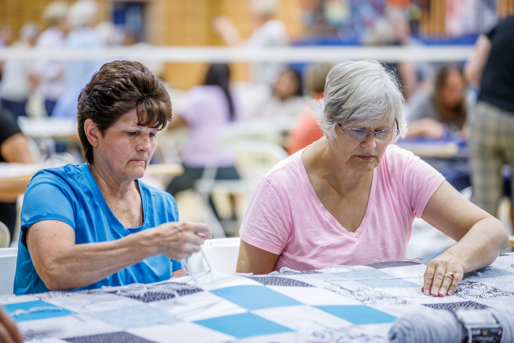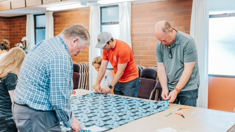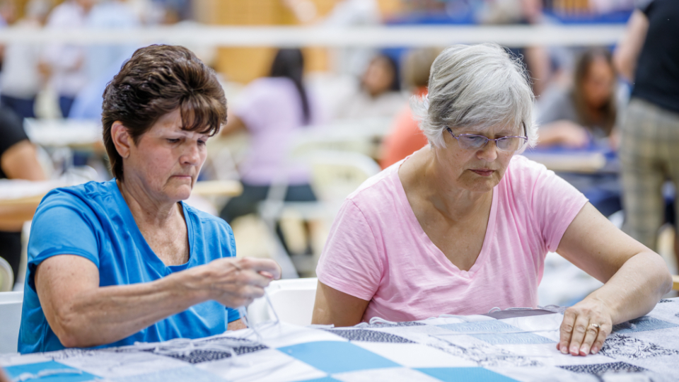 Volunteers assemble quilts at Centerville Junior High School as a part of the National Day of Service in Centerville, Utah, on Saturday, September 9, 2023.2023 by Intellectual Reserve, Inc. All rights reserved.Volunteers in Centerville were busy making quilts at 20 quilting stations for teen centers and refugee centers in northern Utah.