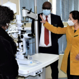 A doctor demonstrates the use of vision care equipment to local government authorities in Mpumalanga, June 2021.2021 by Intellectual Reserve, Inc. All rights reserved.The donation from the Church helps the South African government treat and prevent cases of avoidable blindness through procedures such as cataract surgery.