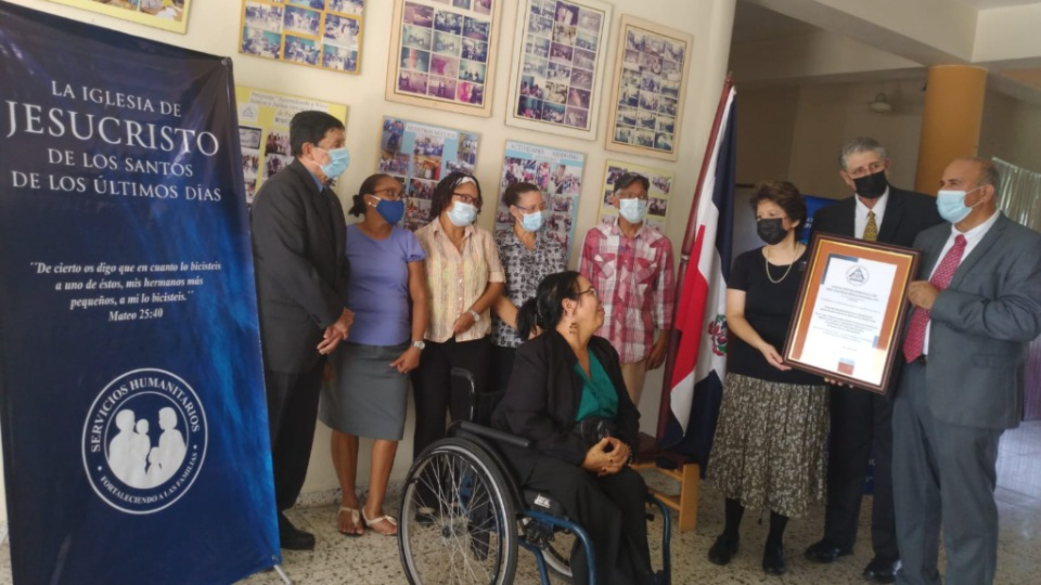 Representatives of The Church of Jesus Christ of Latter-day Saints in the Dominican Republic receive recognition from ASODIFIMO executives for their support in the ongoing wheelchair donation program, August 2021.2021 by Intellectual Reserve, Inc. All rights reserved.Raúl Rodríguez, manager of Family Services responded, “We rejoice in carrying out projects like this that bring happiness to people in need.”