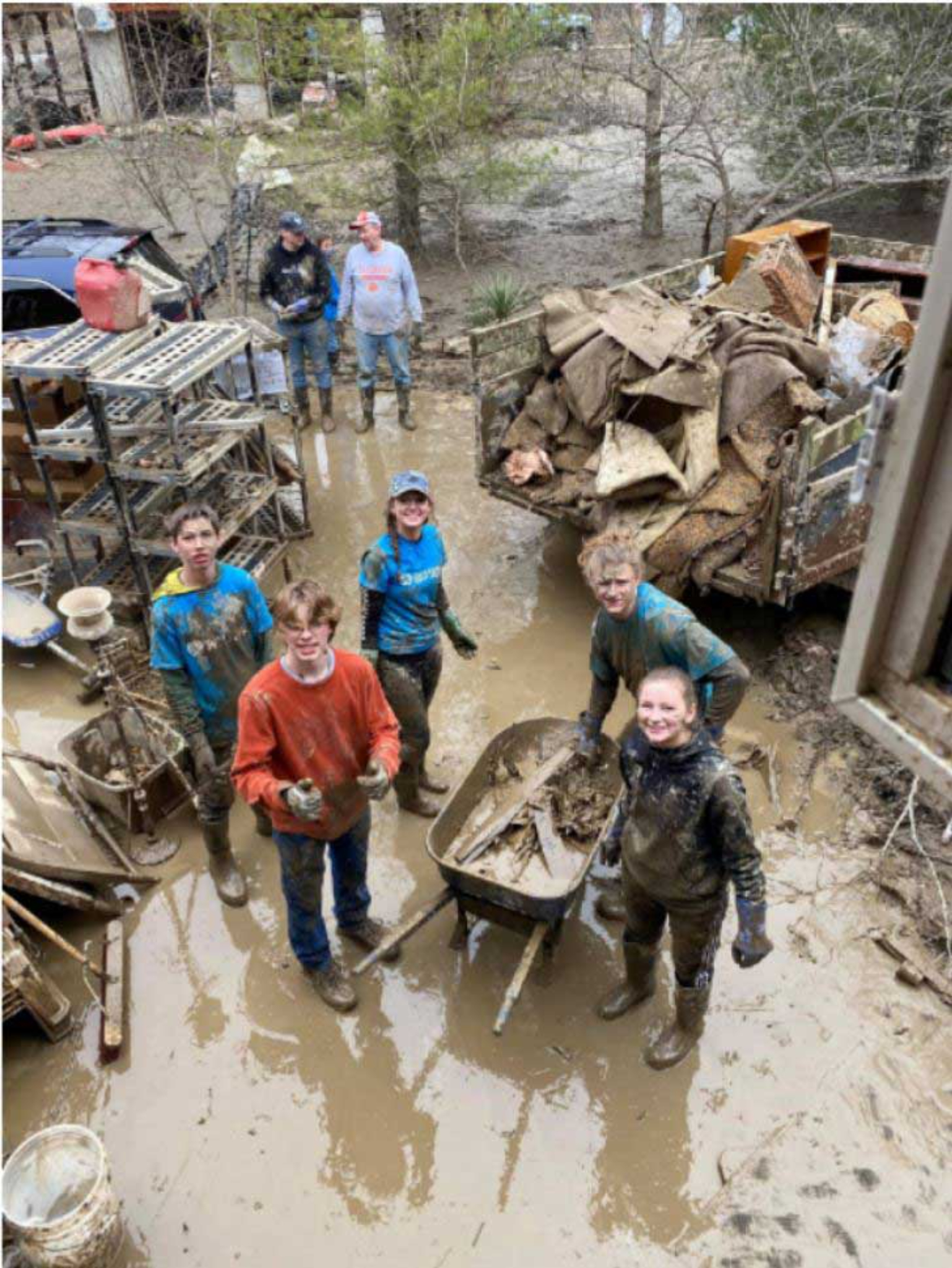 On March 20 and 21, 300 church volunteers assisted with several of these additional deliveries. They included three truckloads of 4,300 pounds of food each, four trucks with 16 pallets of water each, 600 cleaning kits, 1,000 hygiene kits and 50 tarps. Over 980 Owsley County families received food from the donation.