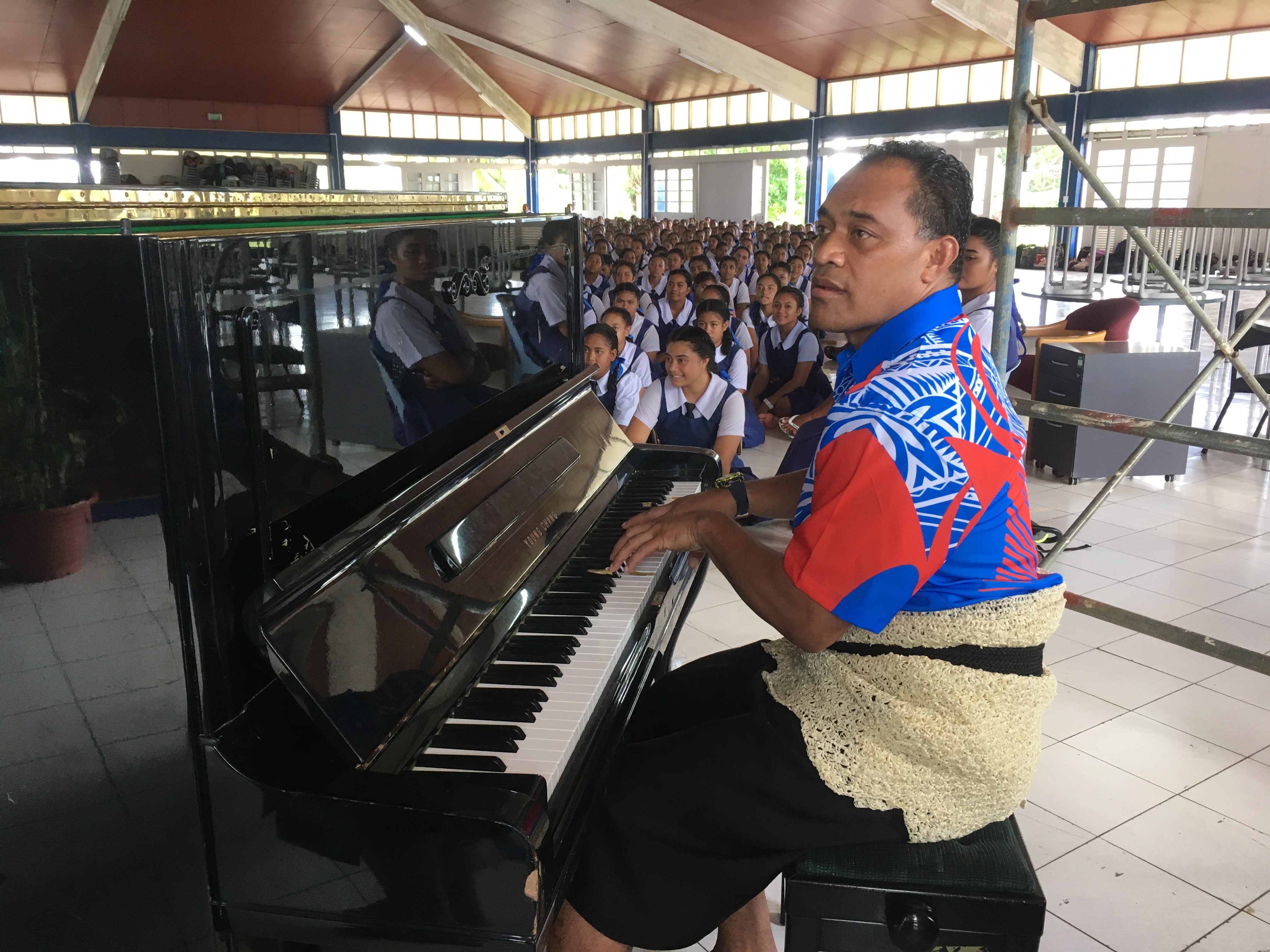 High school bandmaster Linikoni (Koni) Taufa, who plays the piano, said, “The kids are really excited. Some of the girls can play. Others already ask for lessons. Every morning the kids come to play and sing before assembly.”
