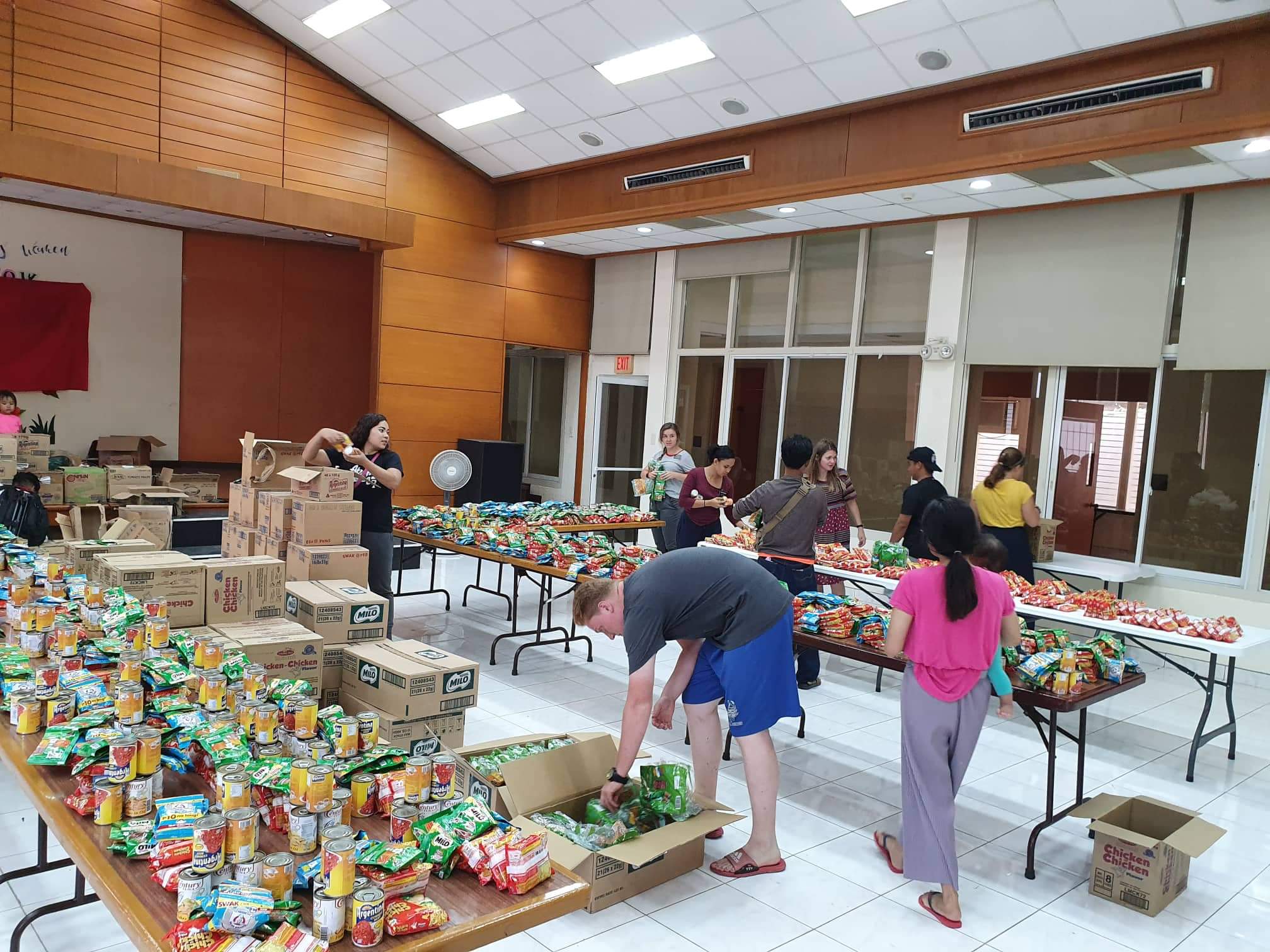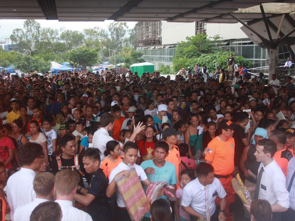 Latter-day Saint Charities and local members of the Church packed sleeping bags, noodles, canned goods, powdered milk and rice for more than 1,500 survivors in Cebu, Philippines. A June blaze consumed 500 homes, causing people to seek shelter at the Cebu International Convention Center.