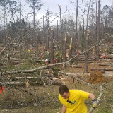 “We went through the park and into a neighborhood adjacent the part that was particularly hit hard,” said Robert Lewis, president of the Tuscaloosa Stake (a group of congregations). “Some homes [were] damaged beyond repair.”