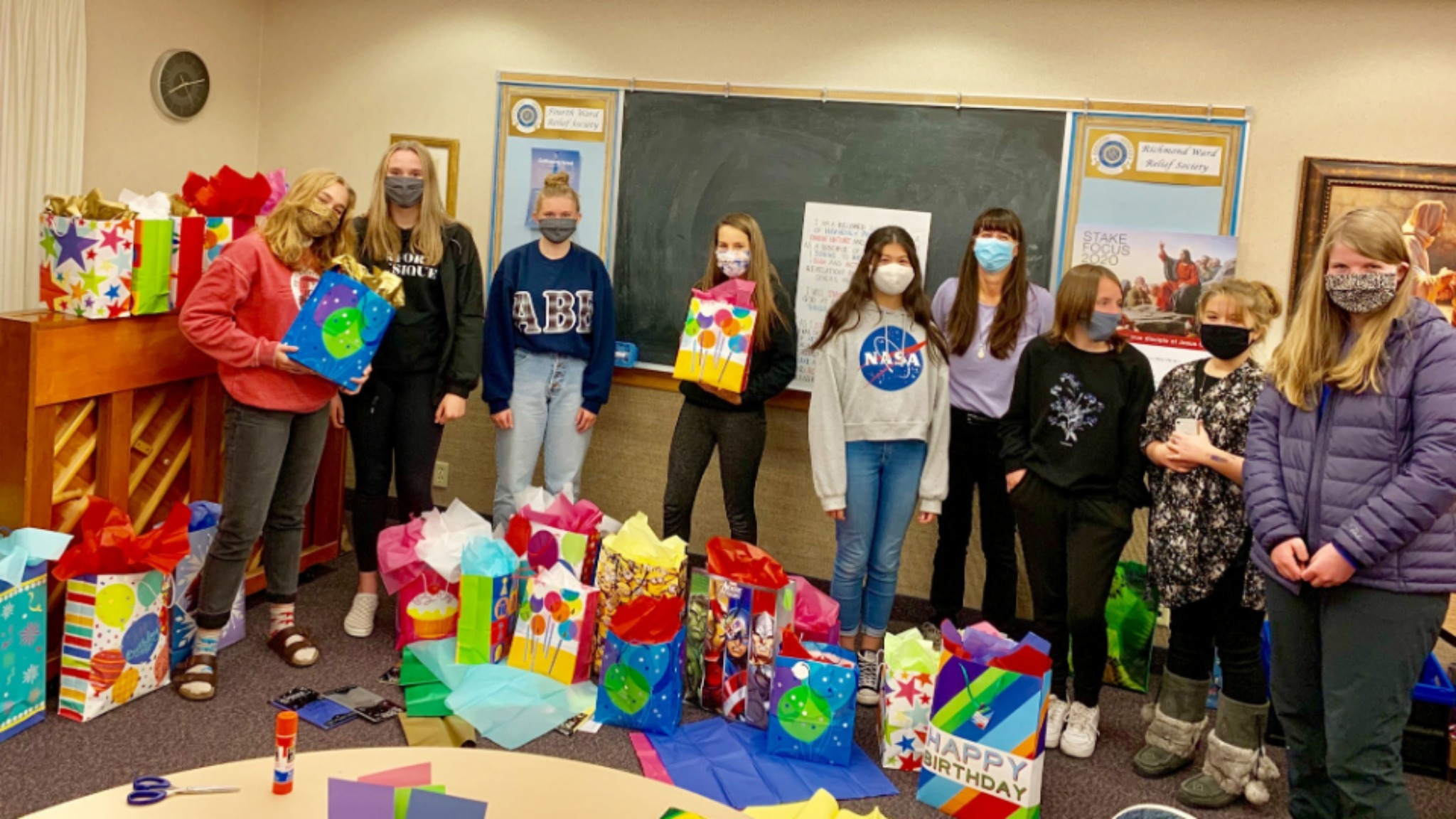 Young women from the Calgary Alberta Stake in Canada assembled nearly 200 birthday bags for the Calgary Food Bank’s Birthday Party Kit Initiative.