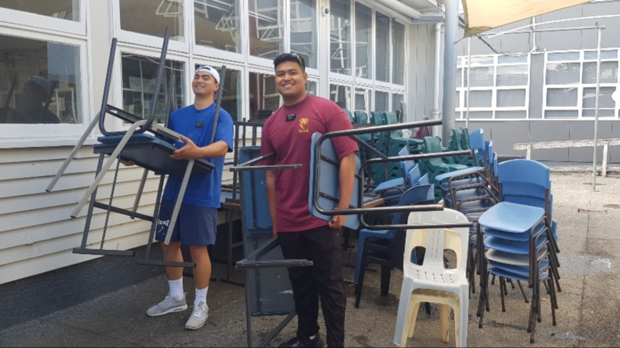 Full-time missionaries in Auckland, New Zealand, helped fill a large container with eight pallets of new schoolbooks and 200 desks, tables and chairs. The items will be shipped to Fiji and distributed by the Ministry of Education to schools that have been damaged by recent cyclones.
