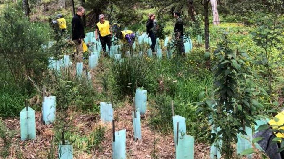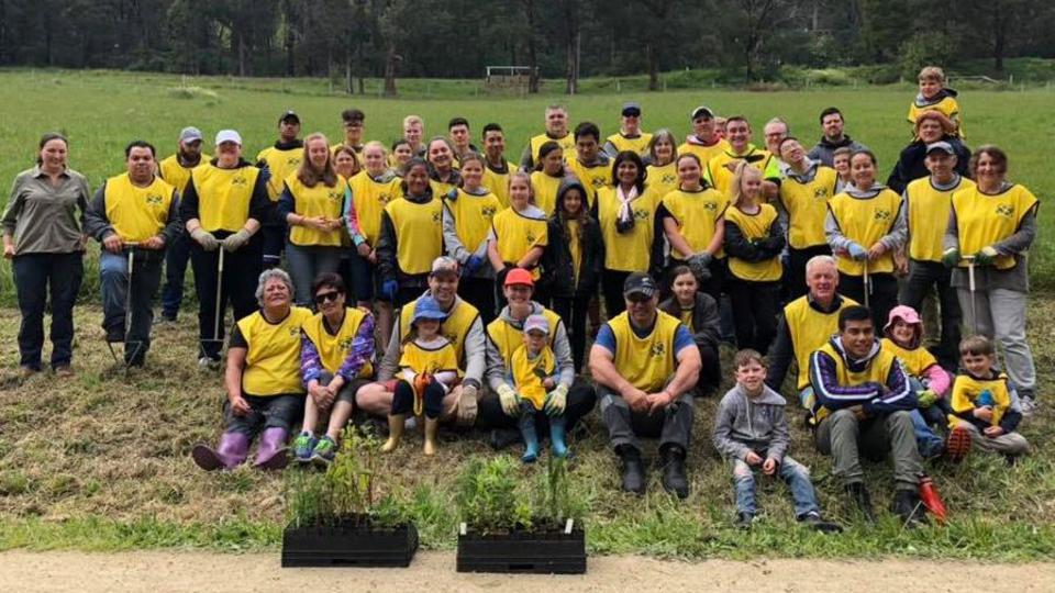 A group of approximately 60 Latter-day Saints wore their Helping Hands vests and began planting more than 130 native trees and shrubs with guidance from Ruth South of the Friends of Cockatoo Creek.