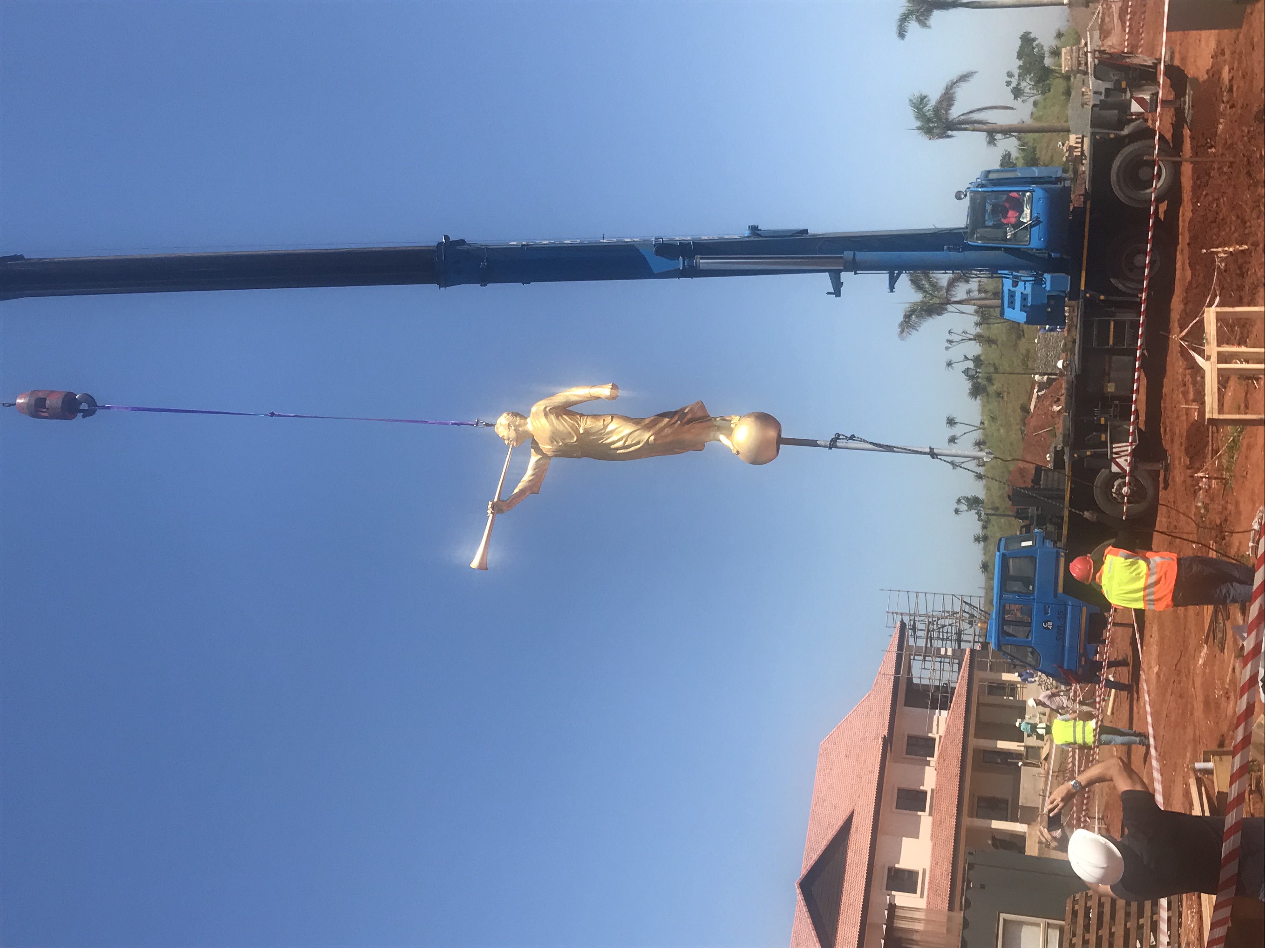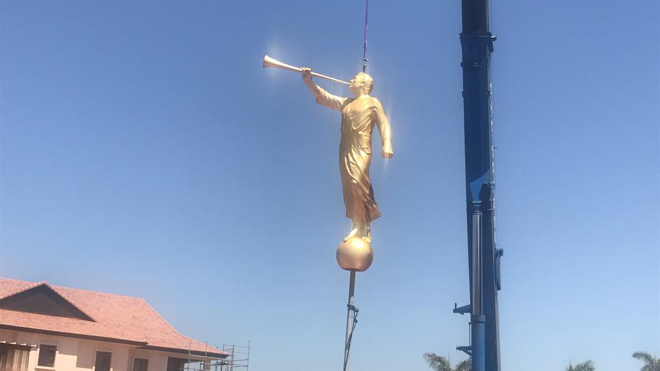 A highlight of the progress of construction occurred recently in South Africa as the statue was placed atop the Durban Temple.