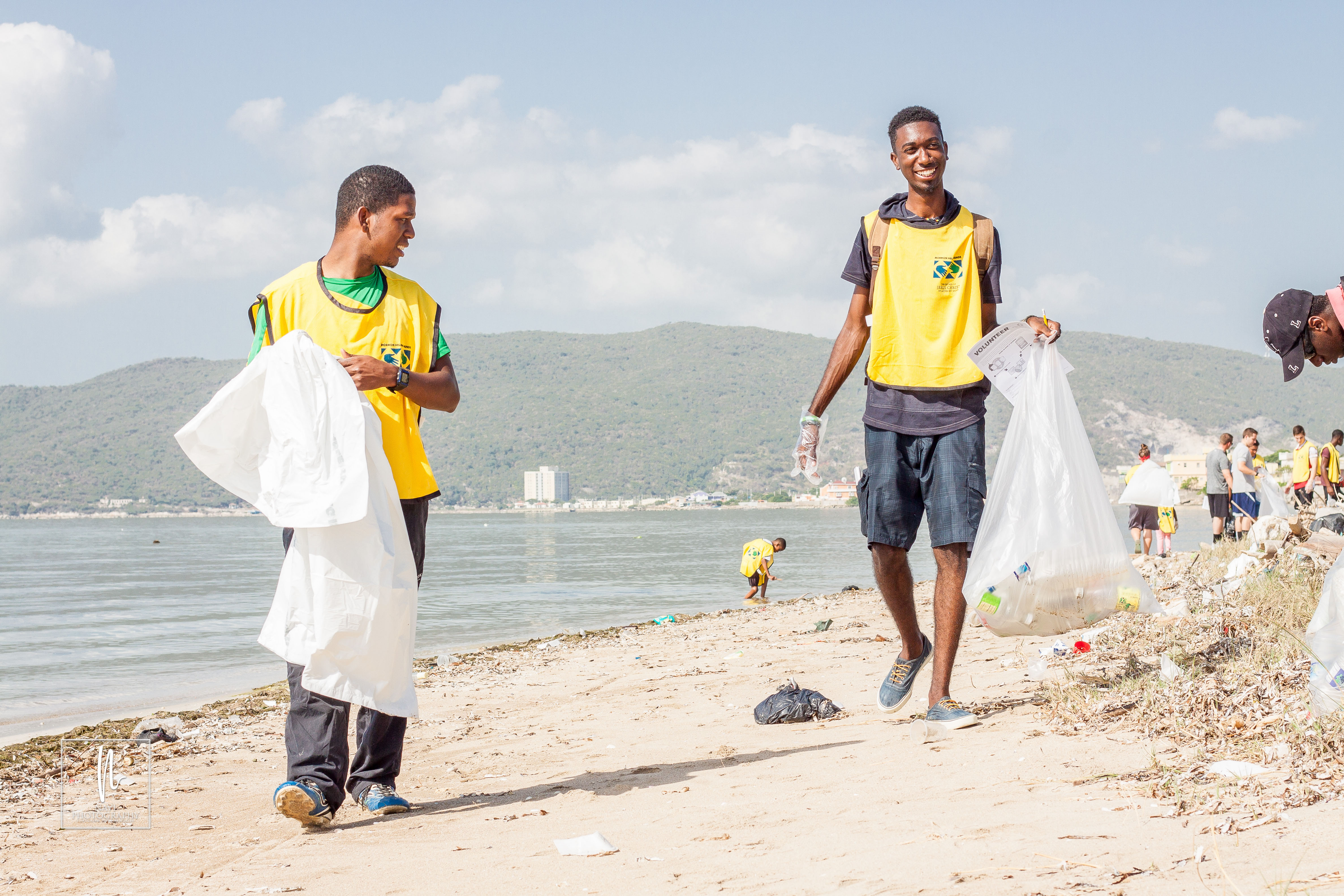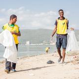 Latter-day Saint Helping Hands volunteers from three areas of the Caribbean island of Jamaica spread out along the Kingston Harbour, Fort Augustus Drive, Portmore, cleaning the beach area. The event was International Coastal Cleanup (ICC) Day 2018.