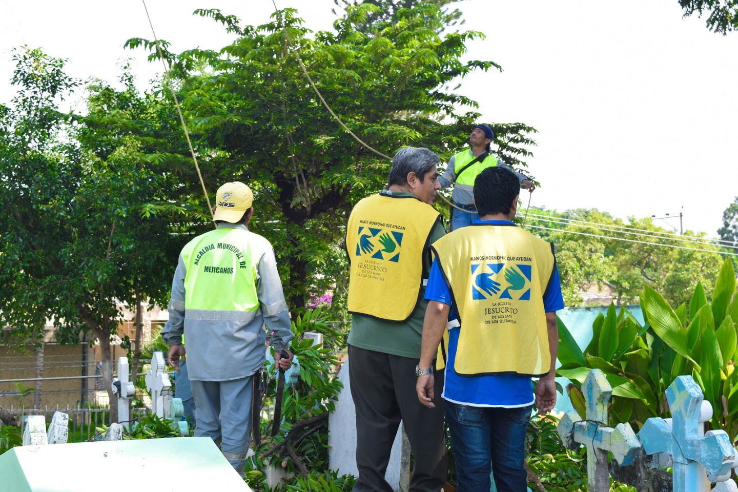 An opportunity to give service in the Mejicanos, El Salvador, cemetery was welcomed by members of the Church. The activity allowed Latter-day Saints, missionaries and workers of the mayor’s office to remove garbage and waste from around trees and plants.