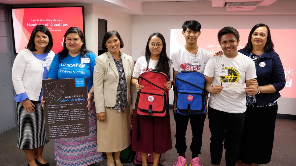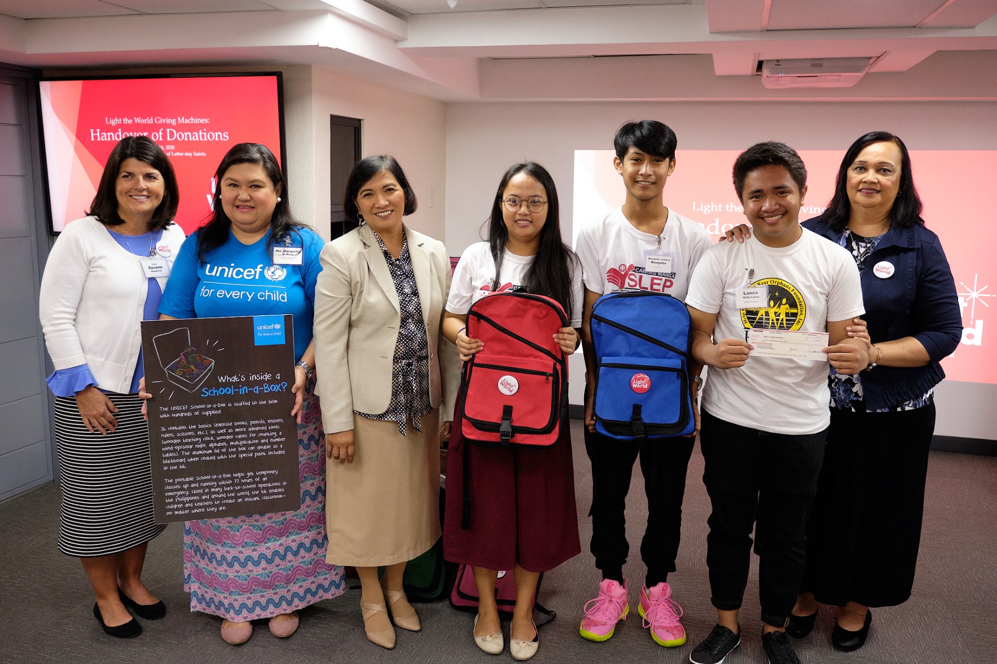 UNICEF Philippines and Caritas Manila, a Catholic social welfare program, also received checks on behalf of Latter-day Saints who participated in the #LightTheWorld campaign to purchase disaster relief and health service items.