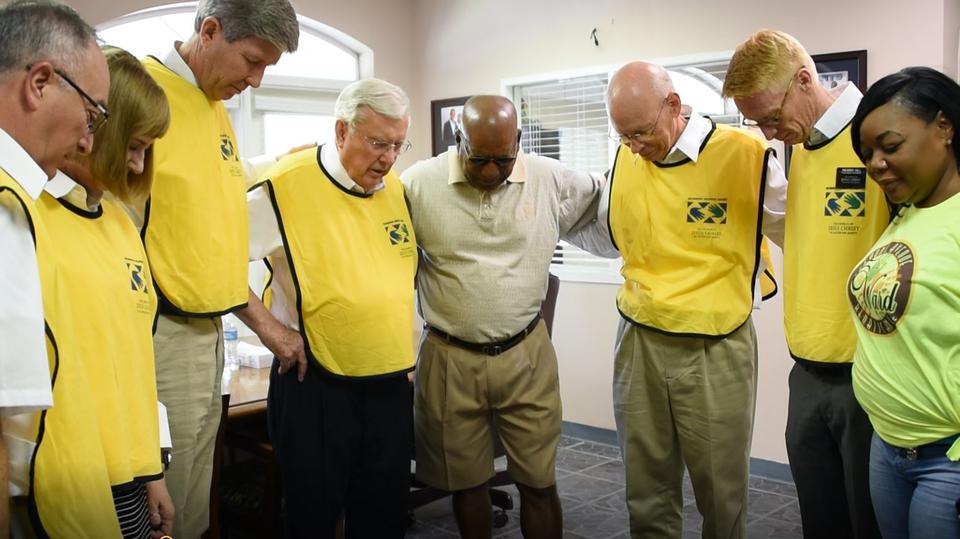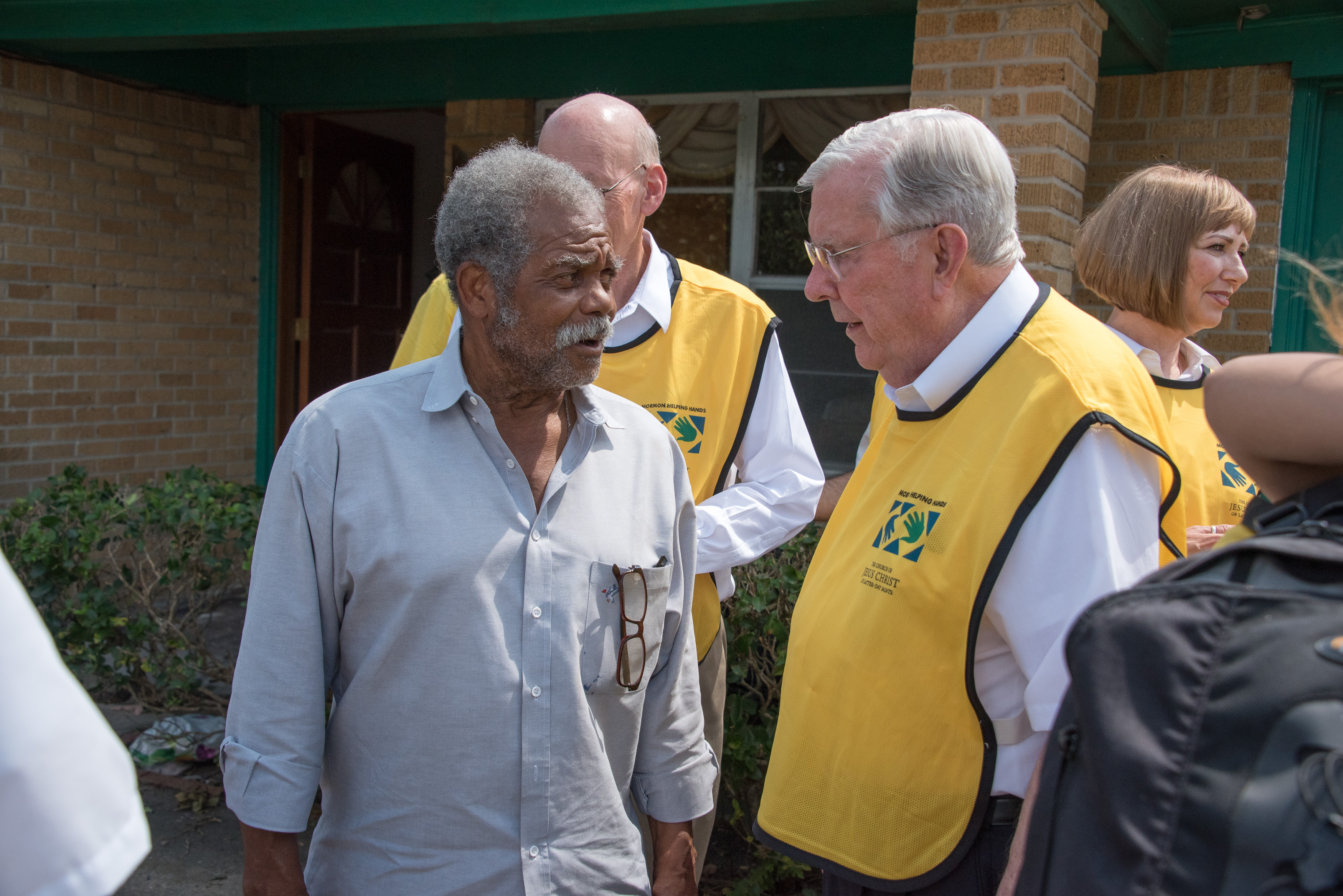 The Mormon leaders visited neighborhoods affected by the flooding, providing words of encouragement to the residents. They also met with Rev. Harvey Clemons Jr., pastor of Pleasant Hill Baptist Church in Houston, who asked Elder Ballard to offer a prayer.