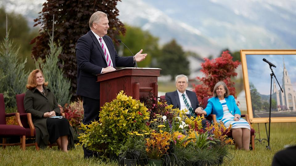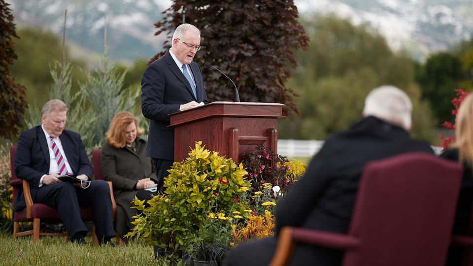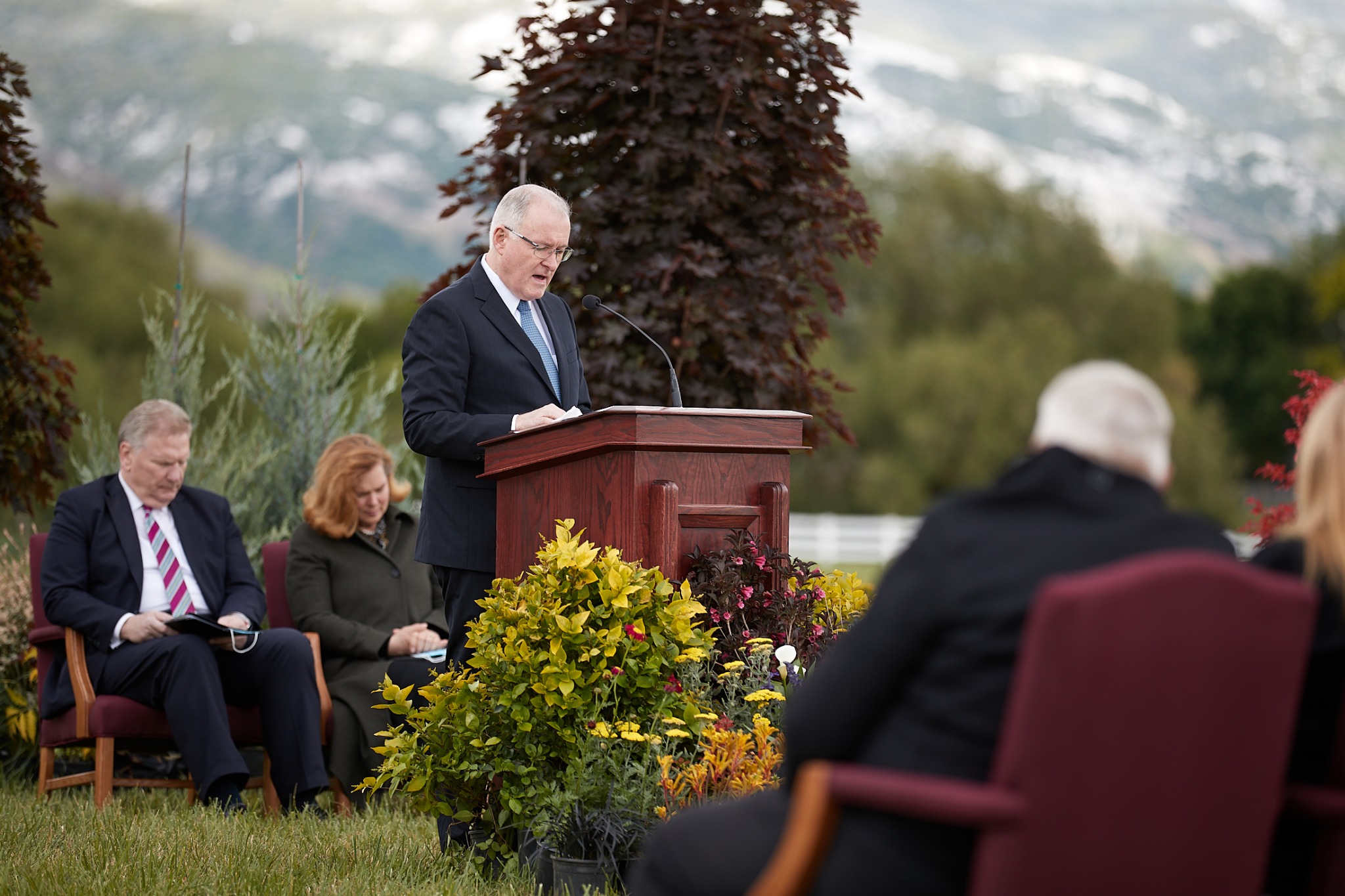 In the dedicatory prayer, the first counselor in the Utah Area Presidency, Elder Randy D. Funk, asked that “this temple may be a beacon of light for the entire community and a blessing for all.” He concluded with an important expression of gratitude that describes the central purpose of all the Church’s temples. “We thank Thee for the infinite atonement of Thy Son, Jesus Christ,” Elder Funk said, “which makes possible our return to Thee, and for the covenants and ordinances of the temple, which give us hope and bring us joy during all seasons and in all circumstances of life.” The full prayer can be viewed at the 20-minute mark of the video of the groundbreaking.