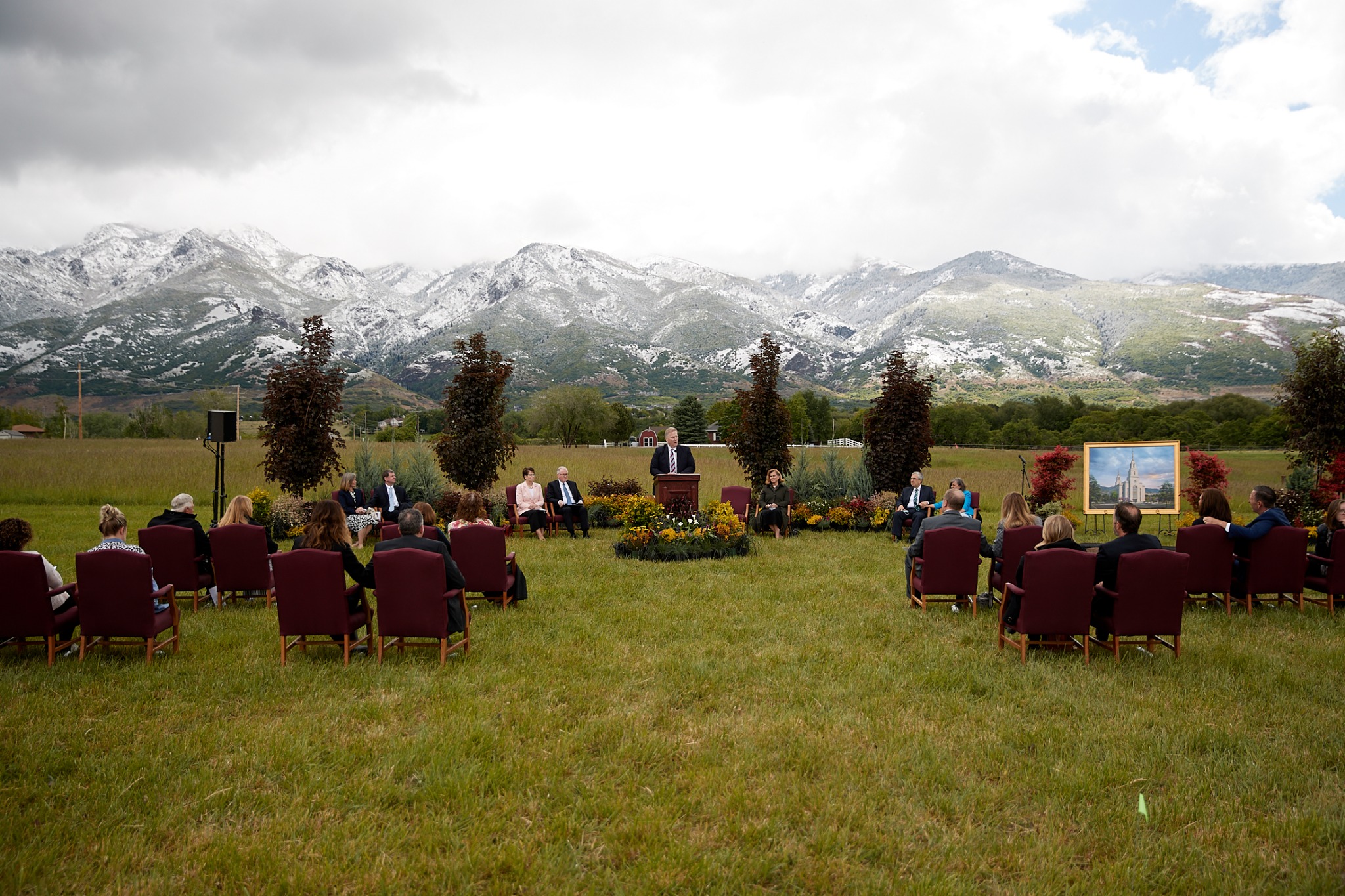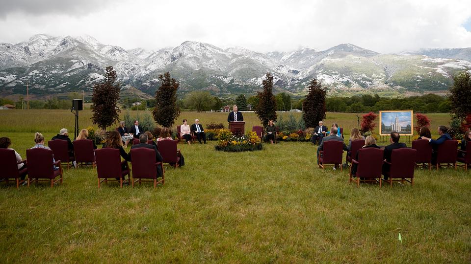 A small handful of members of The Church of Jesus Christ of Latter-day Saints gathered on the overcast, 40-degree morning of May 23, 2020, to break ground for the Layton Utah Temple. The group was limited in size because of COVID-19 precautions. The full recording of the event is now available.