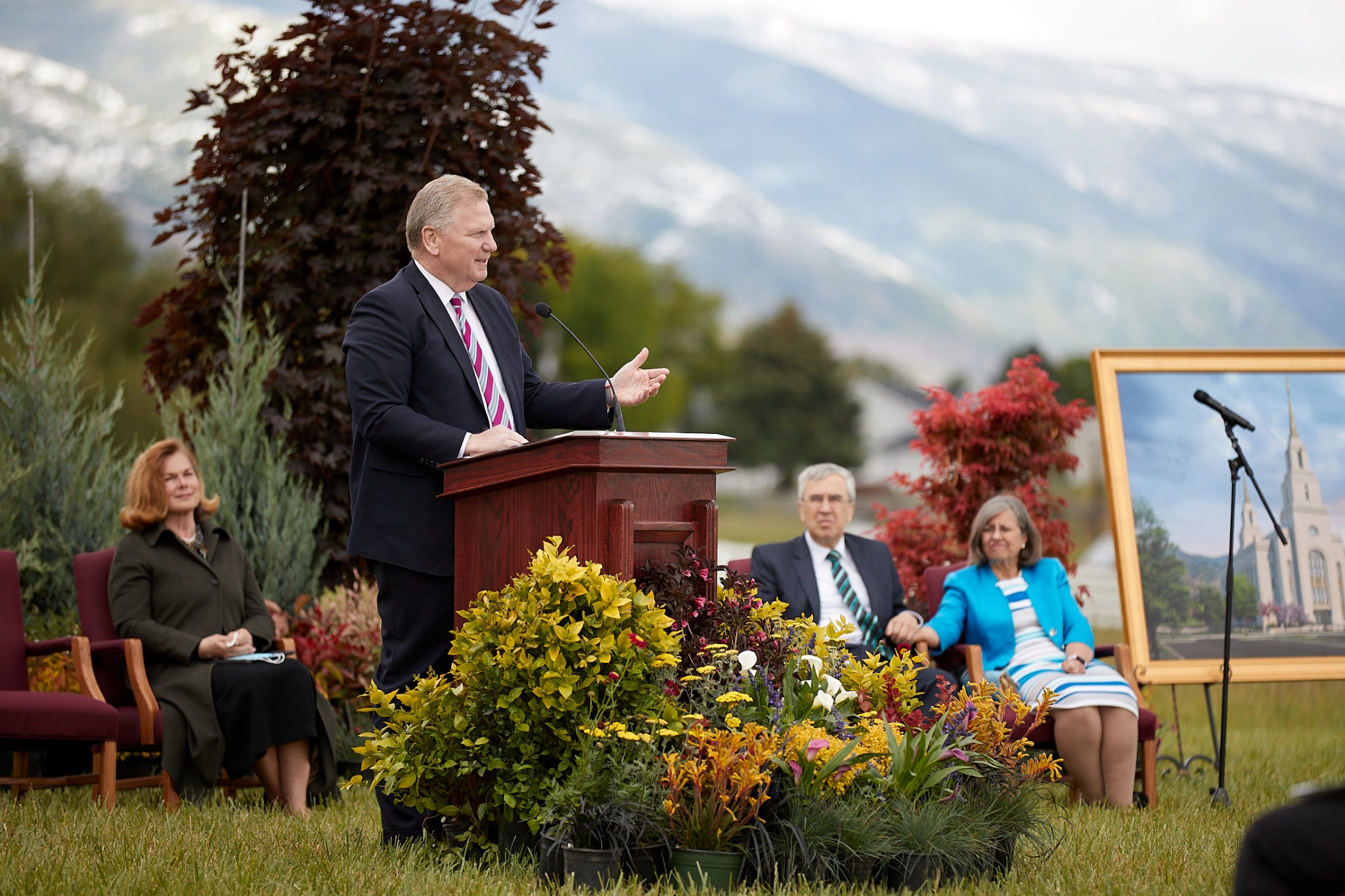 “We are very grateful to join you from this impressive and beautiful site. The Layton Temple will be a large and beautiful temple,” said Utah Area President Elder Craig C. Christensen during the groundbreaking in the field at the corner of Oak Hills Drive and Rosewood Lane. The new temple will be a three-story, 87,000-square-foot structure. “Like every temple, it is the product of the faith of Latter-day Saints who live in this area, and around the world. It reflects our faith in Heavenly Father’s great plan of happiness, and in His Son Jesus Christ, including His Atonement and Resurrection.”