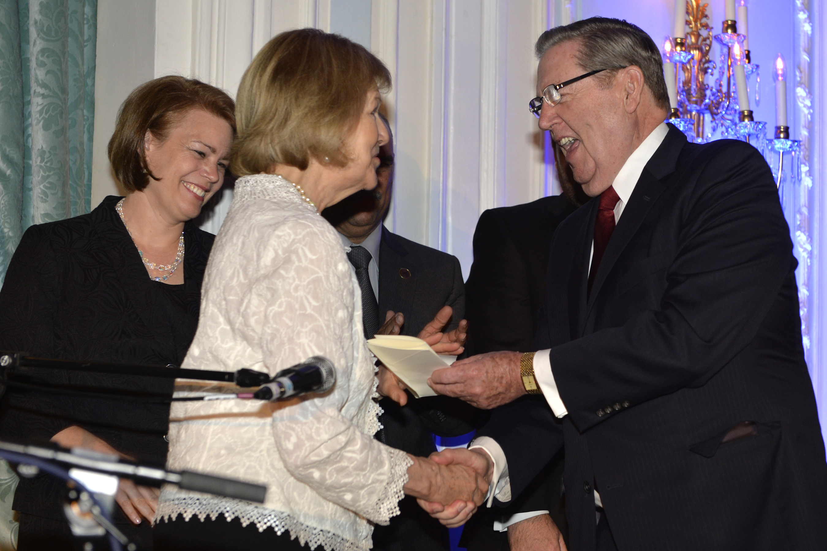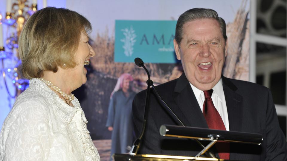 Senior @LDSchurch prophet Elder Jeffrey Holland presents Baroness Nicholson with a massive cheque for our work! pic.twitter.com/JvlEgi31NG