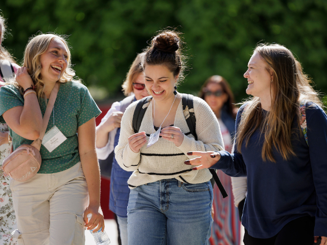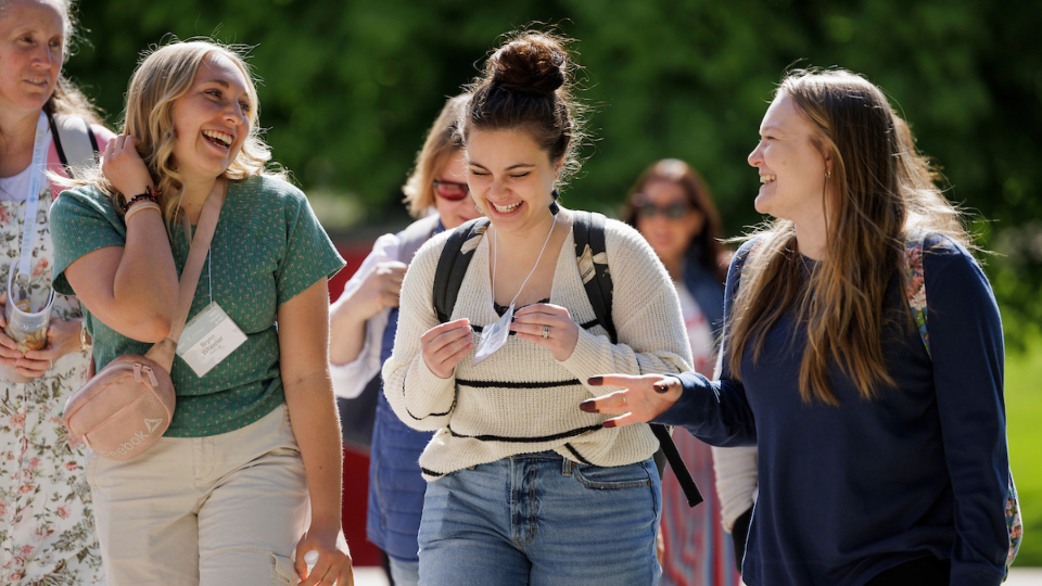 Attendees laugh during BYU Women's Conference held on the BYU campus in Provo, Utah, May 1-3, 2024. Photo courtesy of BYU.2024 by Intellectual Reserve, Inc. All rights reserved.Those who prioritize daily acts of devotion to Heavenly Father and the Savior — such as studying the words of living prophets — invite the Spirit. Then they are able to receive answers, direction and clarity of thought.