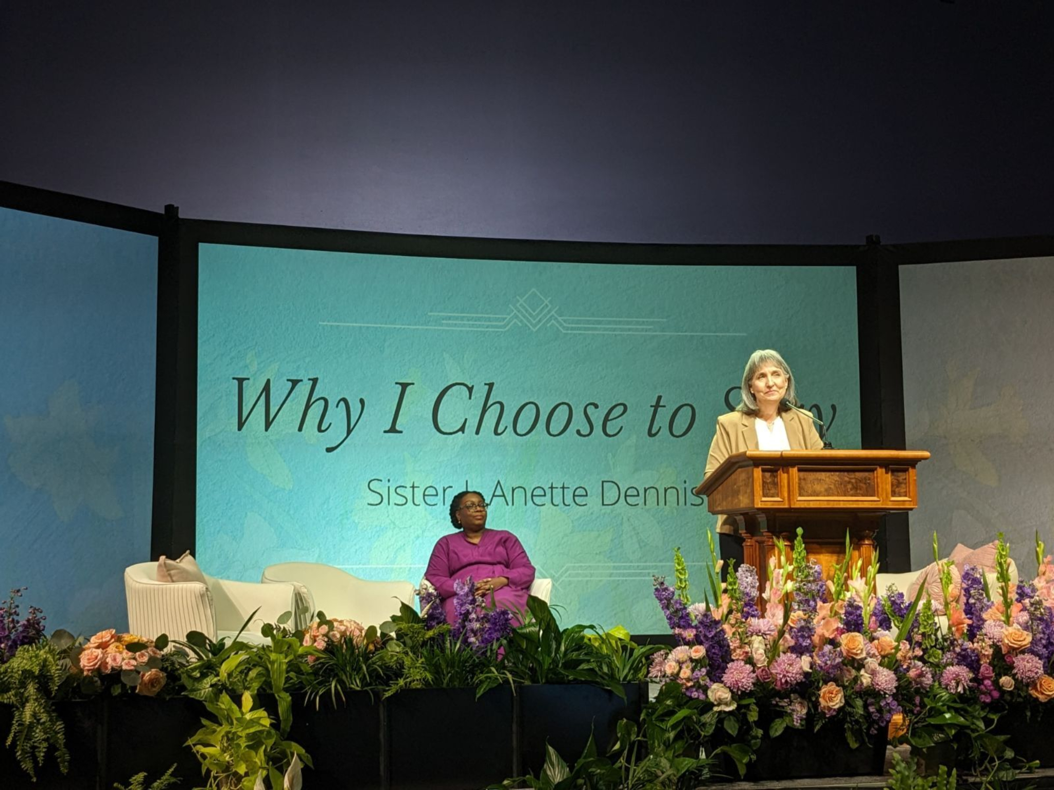 “Sisters, what if I had stuck with my comfortable narrative?” President Johnson asked. “I would have enjoyed spending more time with my grandchildren and I could have been assured the financial security I don’t presently enjoy. And, I would have missed a soul-searching, stretching and faith-building experience. Uphill? Yes. Worth it? Oh, yes.”