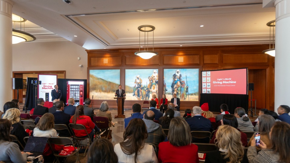 “Light the World is our message of glad tidings, which we’re assured will bring joy to all people because of Jesus Christ — because of His birth, because of His ministry and because of His resurrection,” said Elder Gary E. Stevenson of the Quorum of the Twelve Apostles at the 2024 launch event in the Conference Center on Temple Square on Thursday, November 13, 2024. “Just as angels declared words of great joy at His birth, we too in our own small way, gift by gift, can be angels in the lives of others as we extend the love of Jesus Christ to people near and far, and as we proclaim a witness of the Savior of the world.”