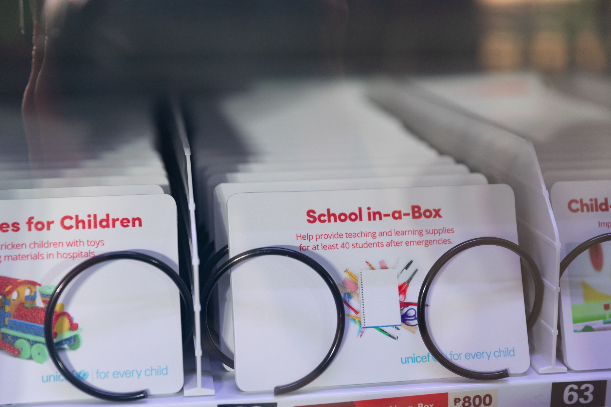 More than 500 local and international nonprofit organizations will participate in this year’s Giving Machine initiative. This year’s global charities are The Academy for Creating Enterprise, American Red Cross, Care, Catholic Relief Services, Church World Service, Days for Girls International, iDE Global, Lifting Hands International, MAP International, Mentors International, Right to Play, Save the Children, UNICEF, Water Aid, and World Food Program. Among the items available are food, shelter, clothing, healthcare, education, job and career training, and livestock.