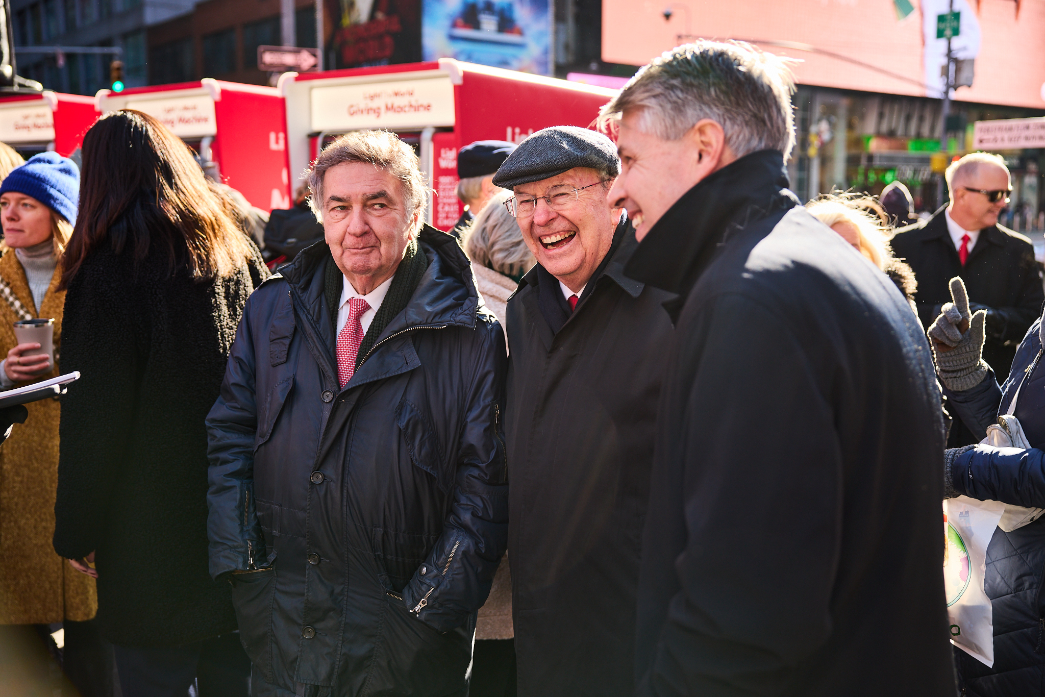 Rabbi Joseph Potasnik (left), Elder Quentin L. Cook of the Quorum of the Twelve Apostles (middle) and Elder David R. Marriott, Area Seventy (right), visit at the Light the World Giving Machines kick-off event at New York City on Monday, December 2, 2024. 2024 by Intellectual Reserve, Inc. All rights reserved.November 26