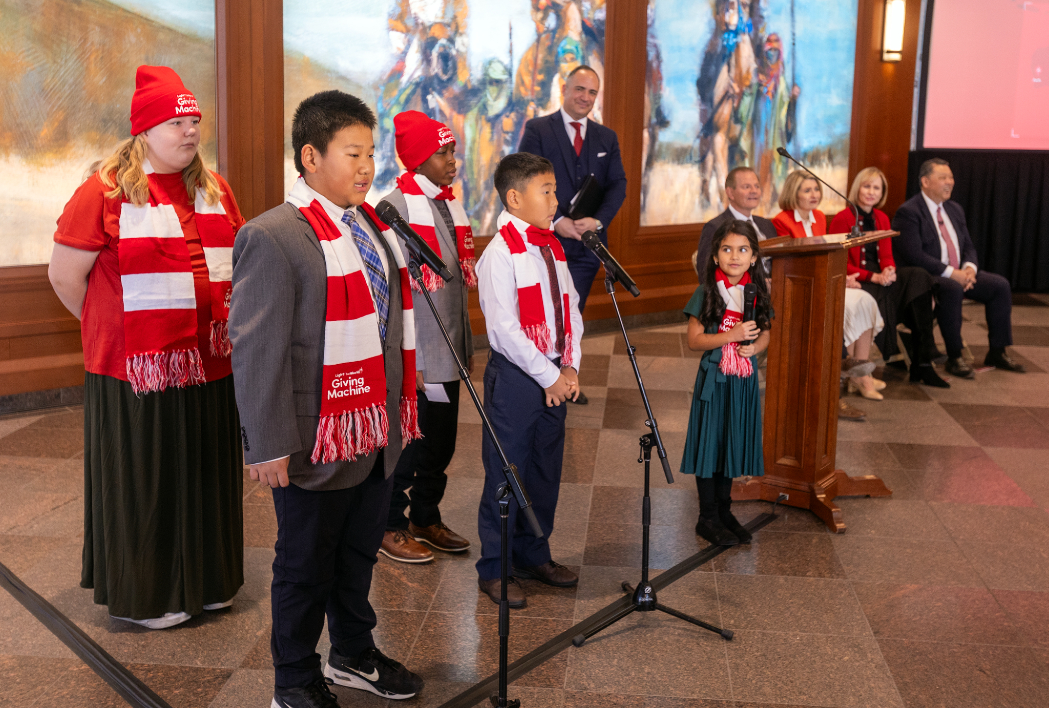 Children announce new locations for Giving Machines at the global launch event for the 2024 Giving Machines at the Conference Center on Temple Square on Thursday, November 13, 2024.© 2024 by Intellectual Reserve, Inc. All rights reserved.November 11