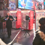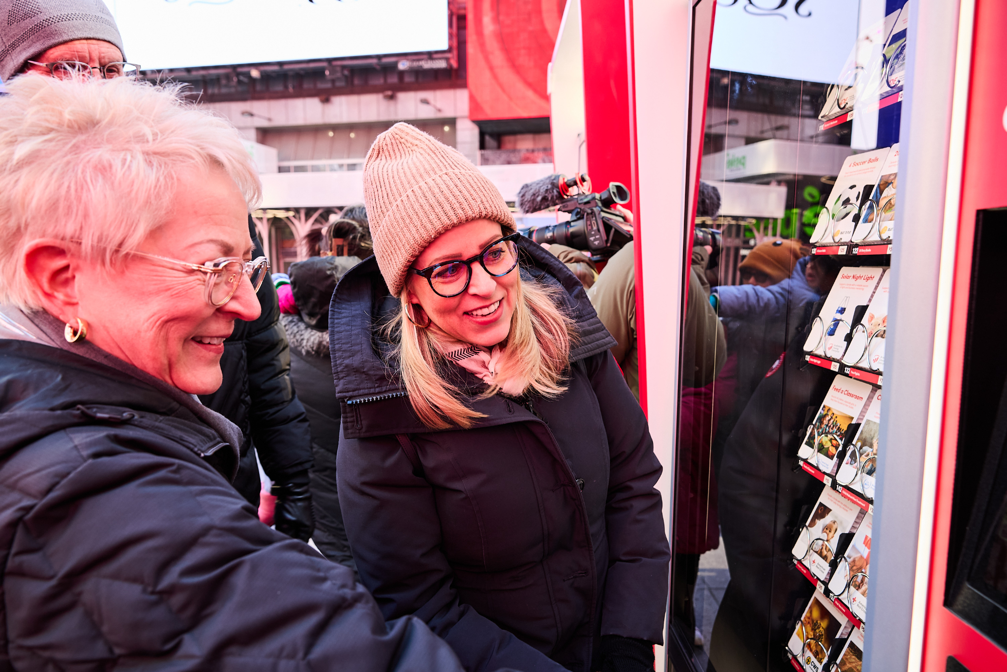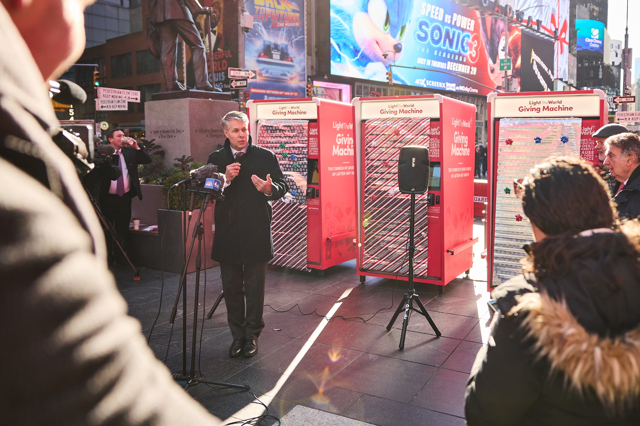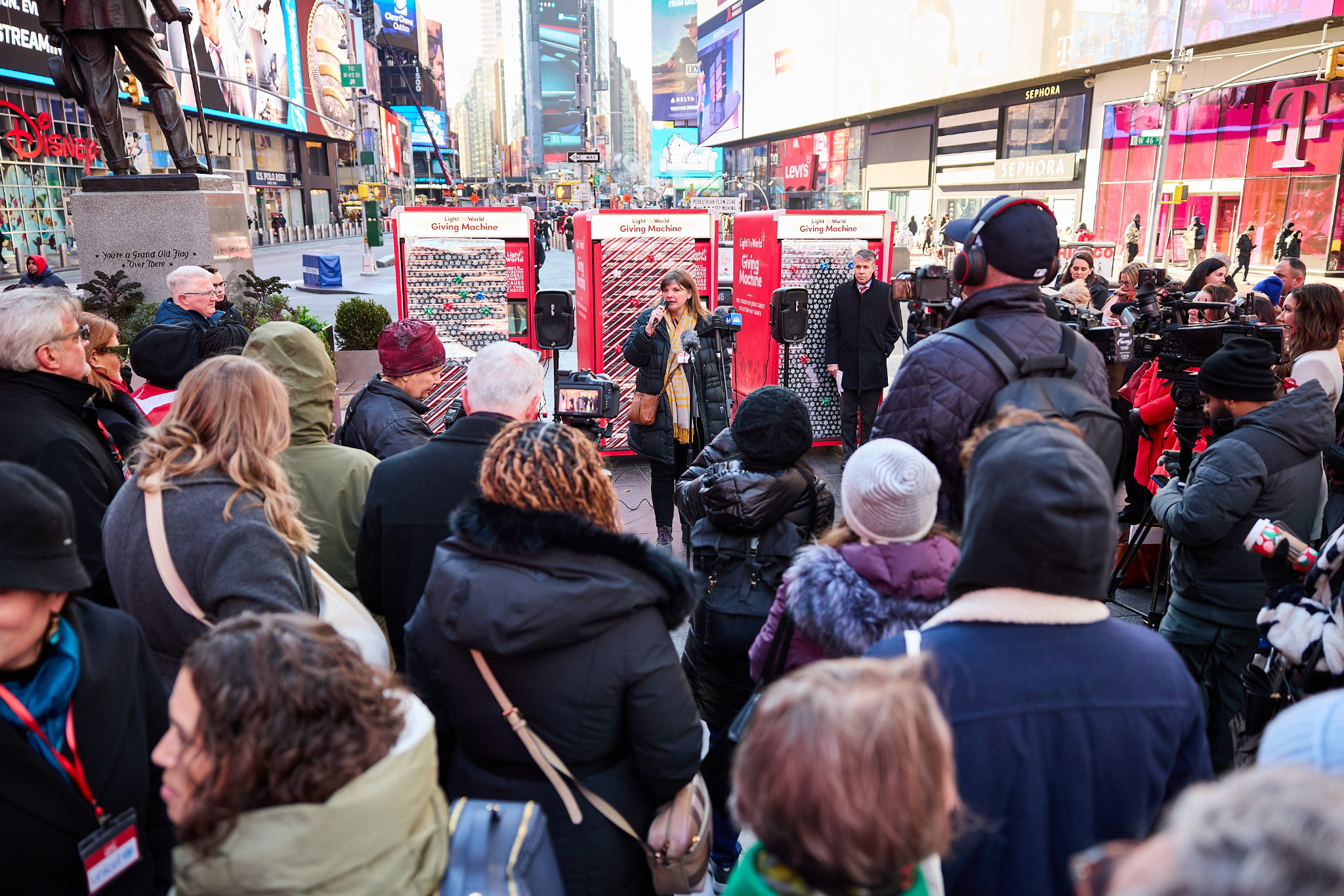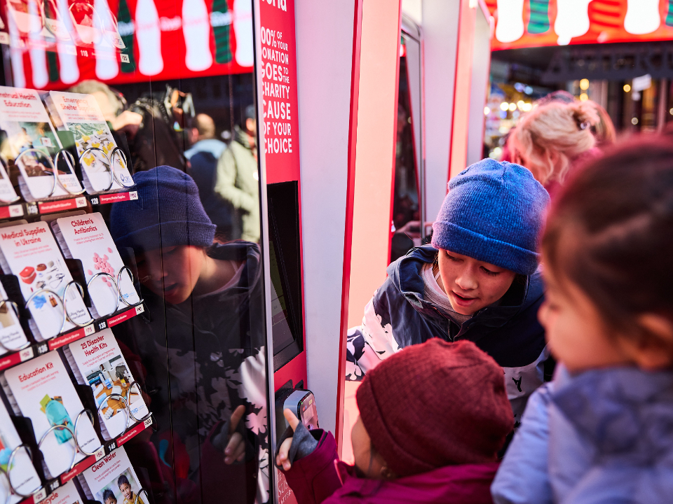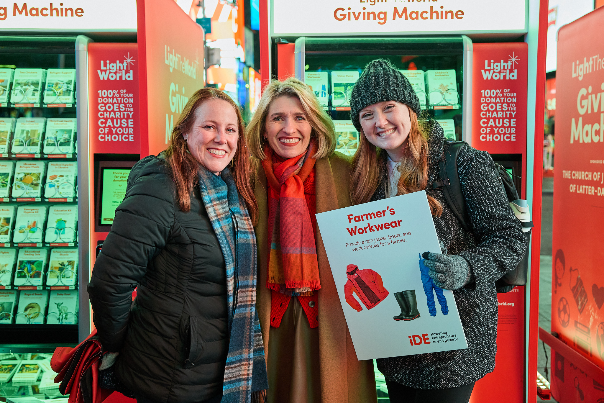 People passing through Times Square this Christmas season can lift others again by donating to a Light the World Giving Machine.