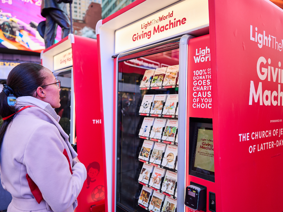 “These Giving Machines afford all of us a very unique giving experience,” said Relief Society General President Camille N. Johnson. “Rather than purchasing a soda or a treat, we have the opportunity to bless those who are most vulnerable, to care for those in need, to address the needs of our neighbors — both those who live right around the corner from us and those who live on the other side of the world.”