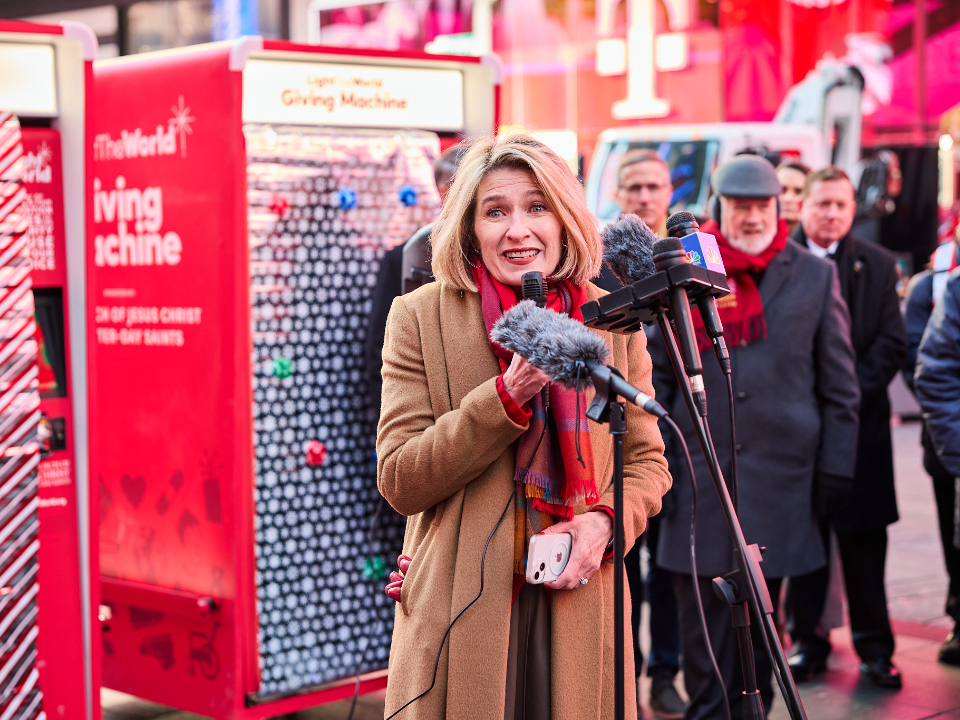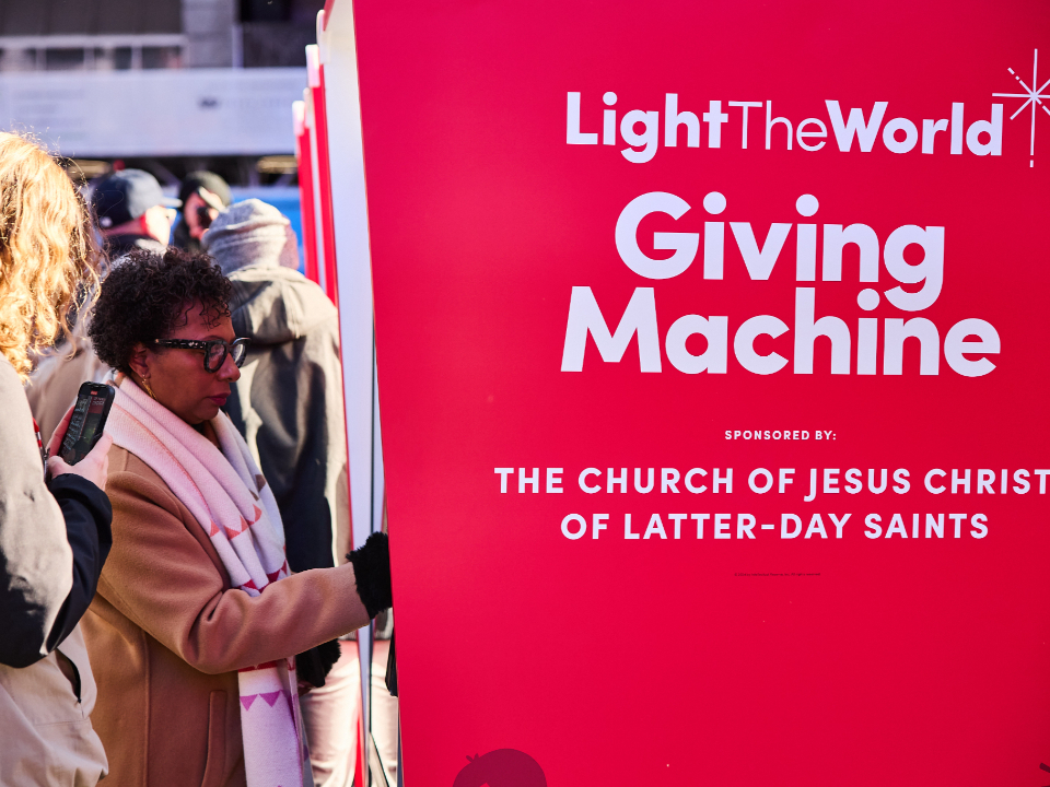 Dozens of people gathered on the morning of Monday, December 2, 2024, at the popular New York City destination to unveil this year’s giving-focused vending machines. The Church of Jesus Christ of Latter-day Saints sponsors each machine.