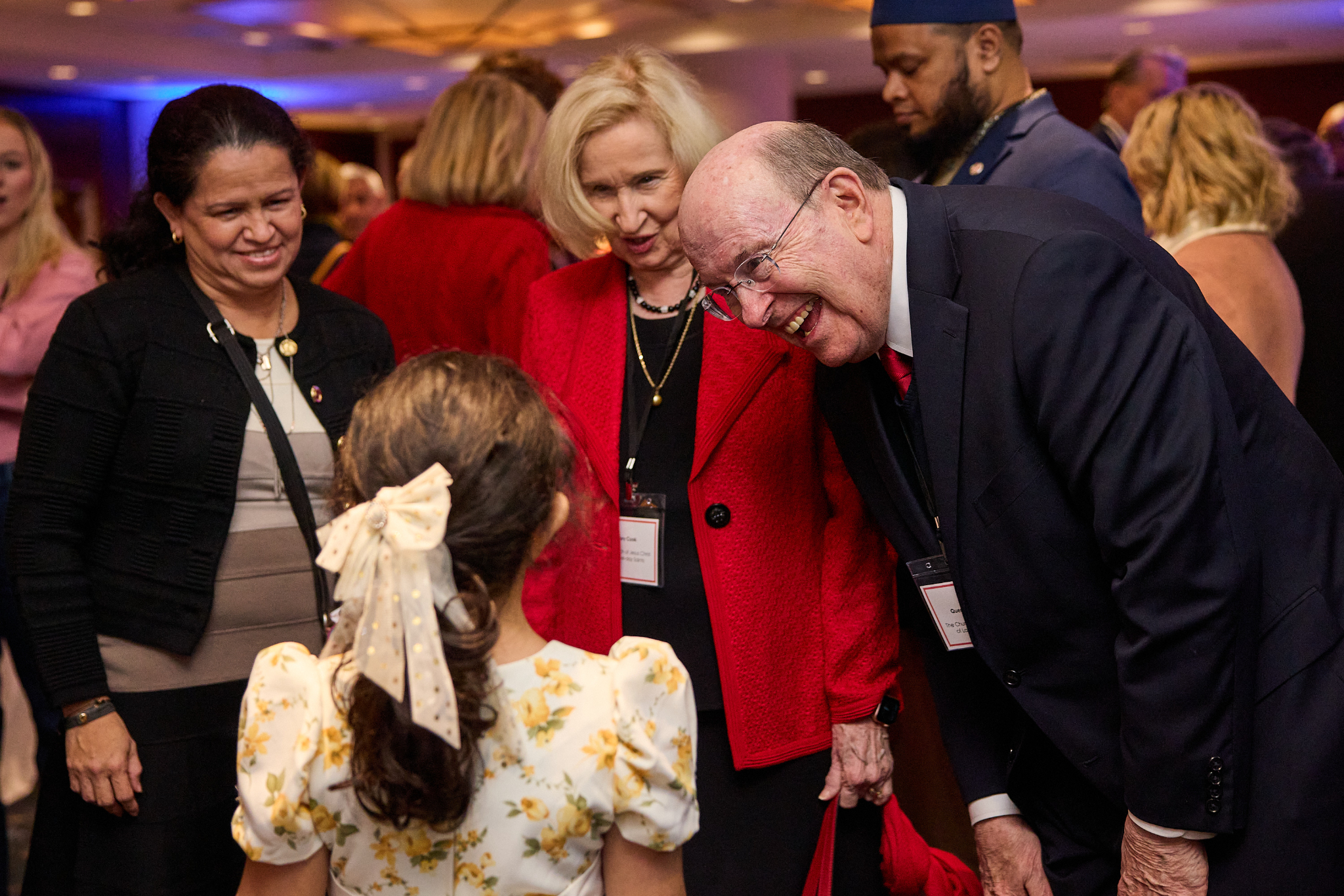 Robert Abrams, attorney general of New York City, and his wife, Diane, visit with Rabbi Joseph Potasnik, executive vice president of the New York Board of Rabbis, at a reception for the Light the World Giving Machines in New York City on Monday, December 2, 2024. 2024 by Intellectual Reserve, Inc. All rights reserved.“It has been a pleasure for us to collaborate with 15 global nonprofits and hundreds of [local] nonprofits to bless the needs of our neighbors all over the world,” President Johnson said. “This is about serving people. It’s about serving our neighbors — including women and children. When you bless the life of a woman, you bless a family, a community, and a nation. When you bless a child, you invest in the future.”