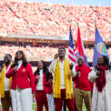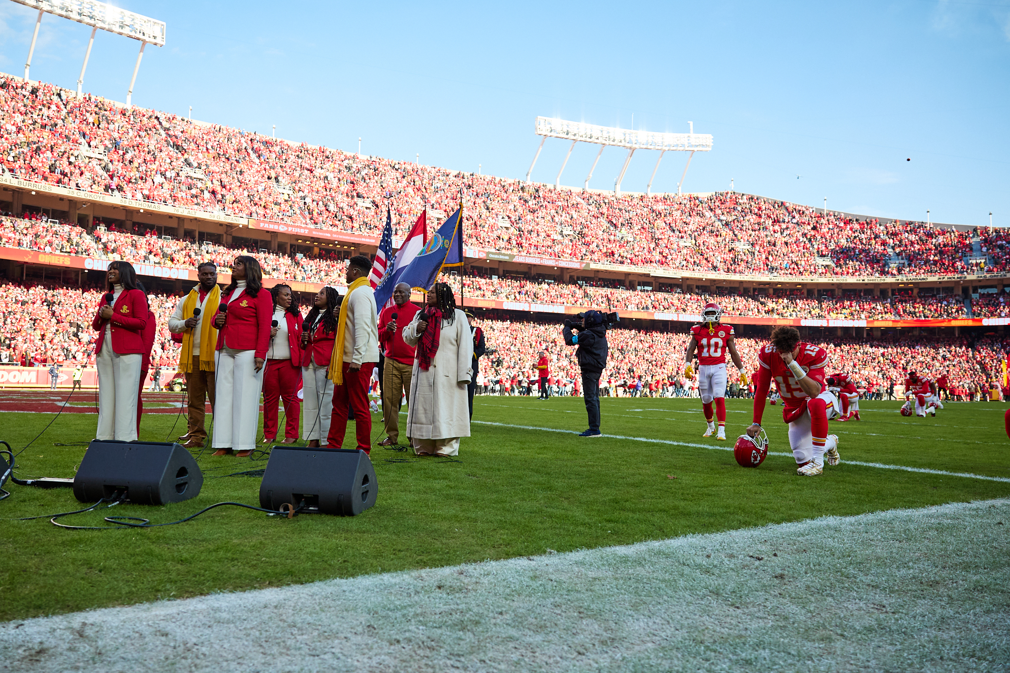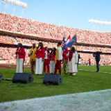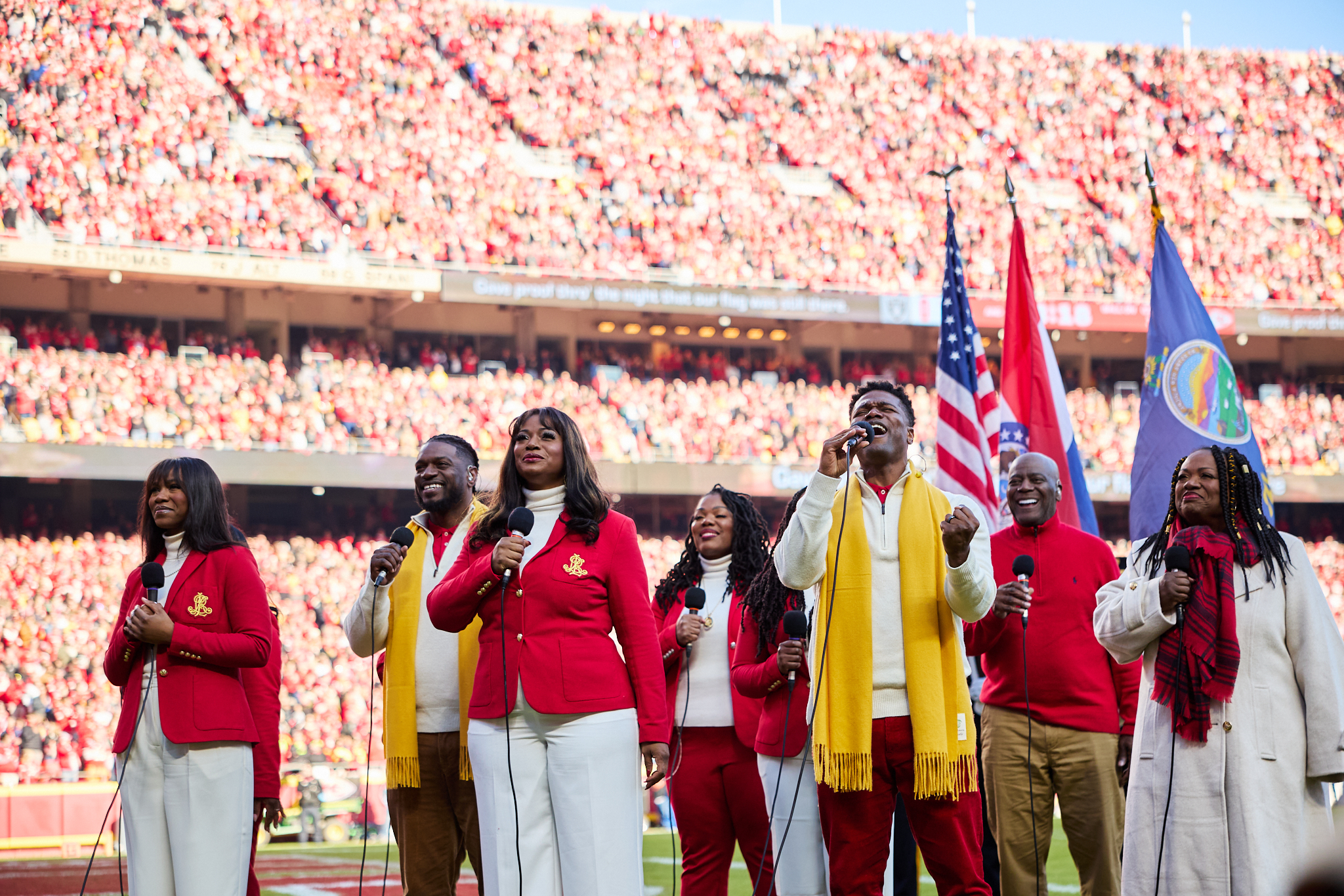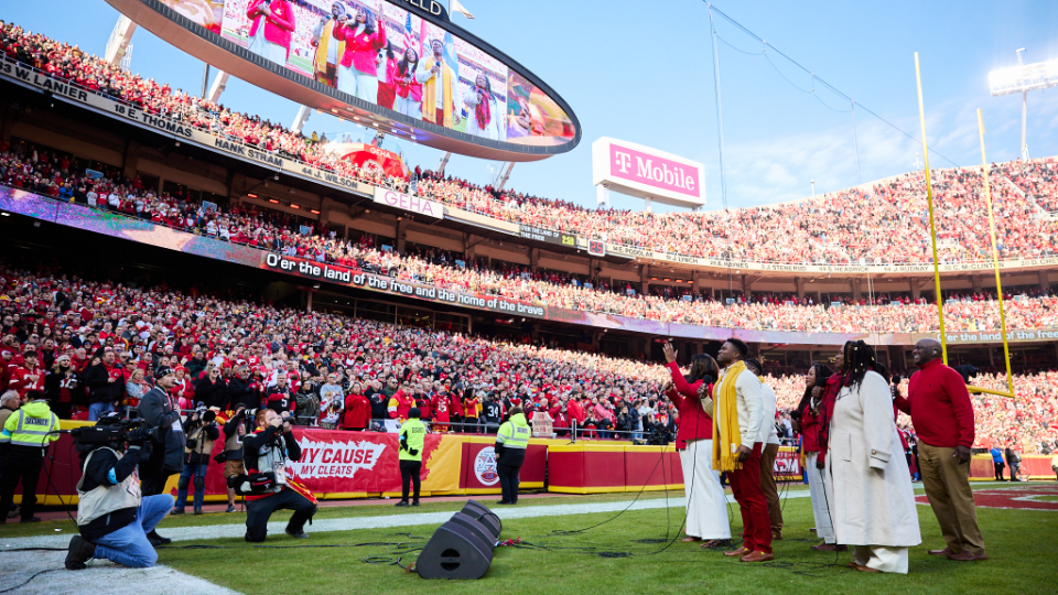 Families and individuals gather in a meetinghouse for The Church of Jesus Christ of Latter-day Saints for a sing-along fireside with Elder Gerrit W. Gong and The Bonner Family on November 28, 2024.2024 by Intellectual Reserve, Inc. All rights reserved.The next day, the Gongs were in attendance as the Bonners sang the national anthem at the Kansas City Chiefs football game and performed the Light the World anthem during a halftime program.