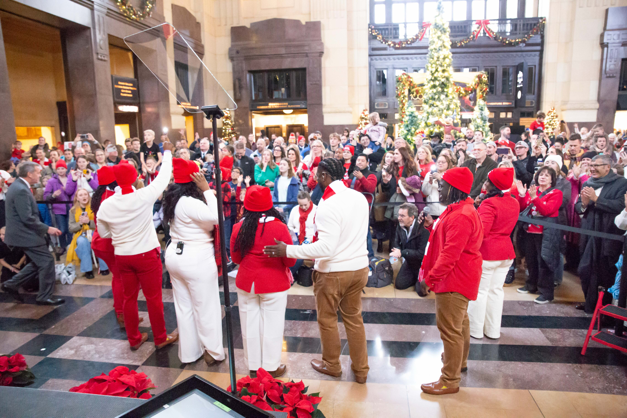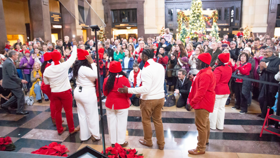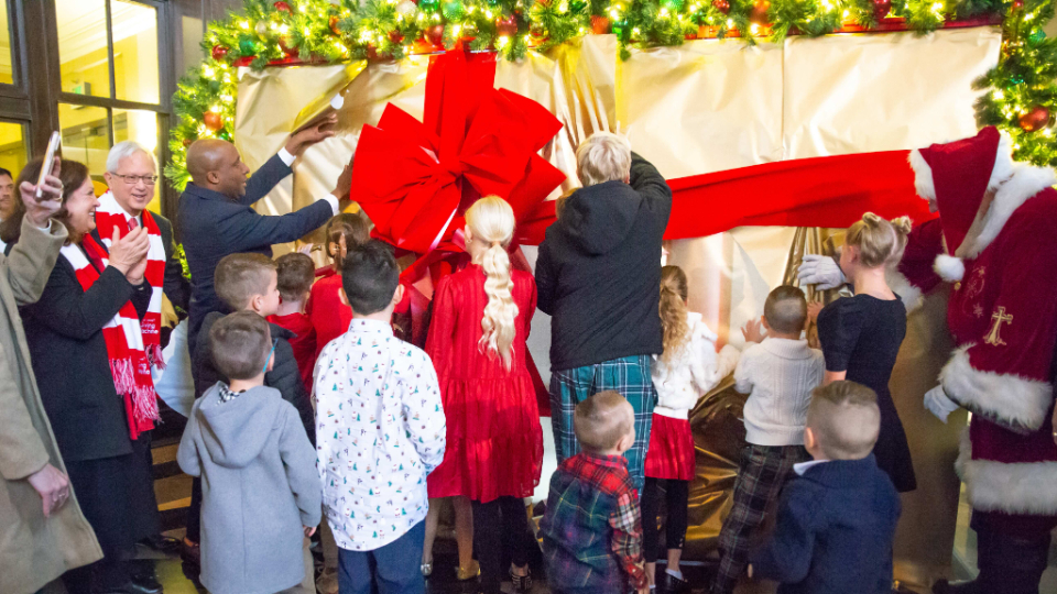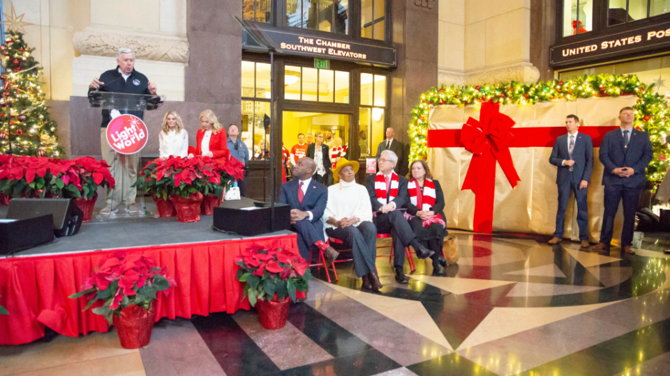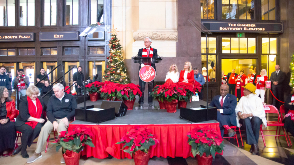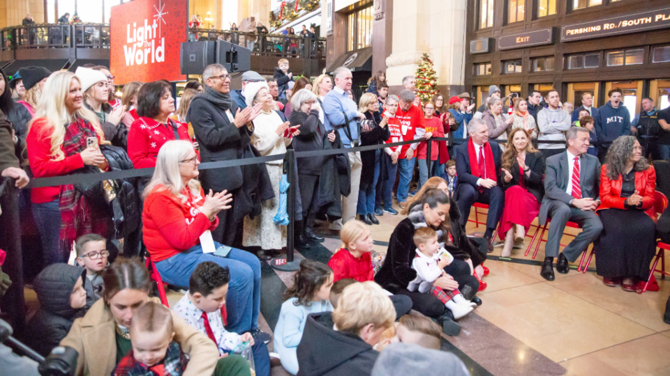 Dignitaries joined community organizations and a senior Church leader on Saturday, November 30, 2024, to unveil Light the World Giving Machines inside historic Union Station in Kansas City, Missouri.