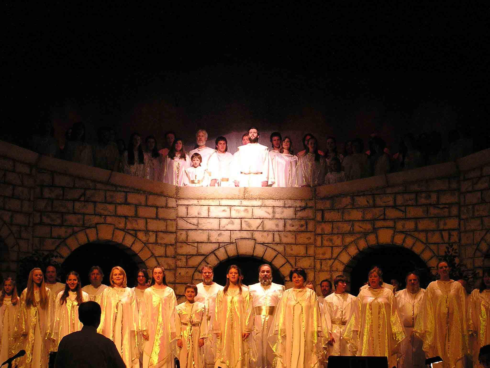 Thompson worked with a volunteer cast of 100 and a youth choir of 800 voices to stage eight performances of the California production, an event held in the Turlock Community Auditorium.