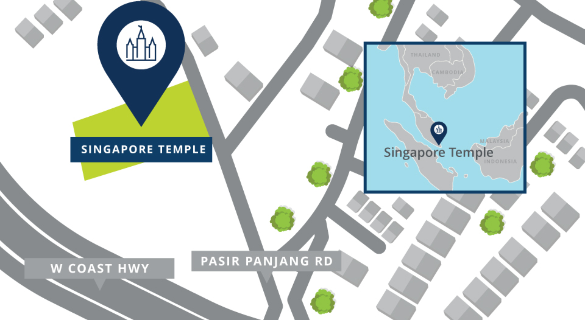 Map showing location of the Singapore Temple. © 2022 by Intellectual Reserve, Inc. All rights reserved.The Singapore Temple was first announced during the April 2021 general conference by Church President Russell M. Nelson. Less than two years before, on a visit to Singapore in November 2019, President Nelson said he prayed for a day when the Saints there would have a temple of their own.