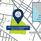 Map showing the location of the Mexico City Benemérito Mexico Temple. 2022 by Intellectual Reserve, Inc. All rights reserved.Plans call for a two-story temple of approximately 29,000 square feet. This will be the city’s second temple. Four additional temples were recently announced for the greater Mexico City area.