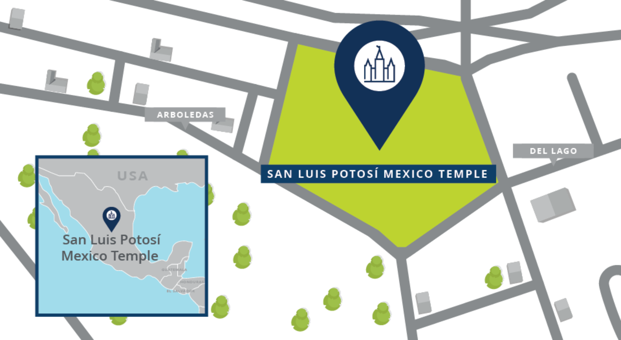 The San Luis Potosí Mexico Temple will be built on a 3.87-acre site located at Arboleda 100, Fraccionamiento del Parque, San Luis Potosí, San Luis Potosí, CP 78260, Mexico. Plans call for a single-story temple of approximately 9,300 square feet. This will be the city’s first temple.